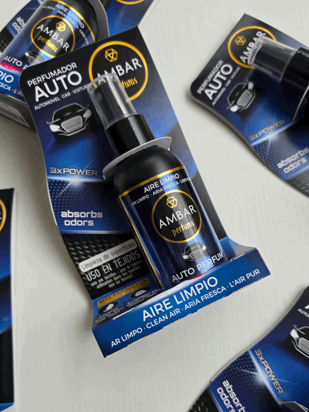 Offrez une atmosphère fraîche et revitalisante à chaque trajet avec le parfum Ambar Perfums Aire Limpio.