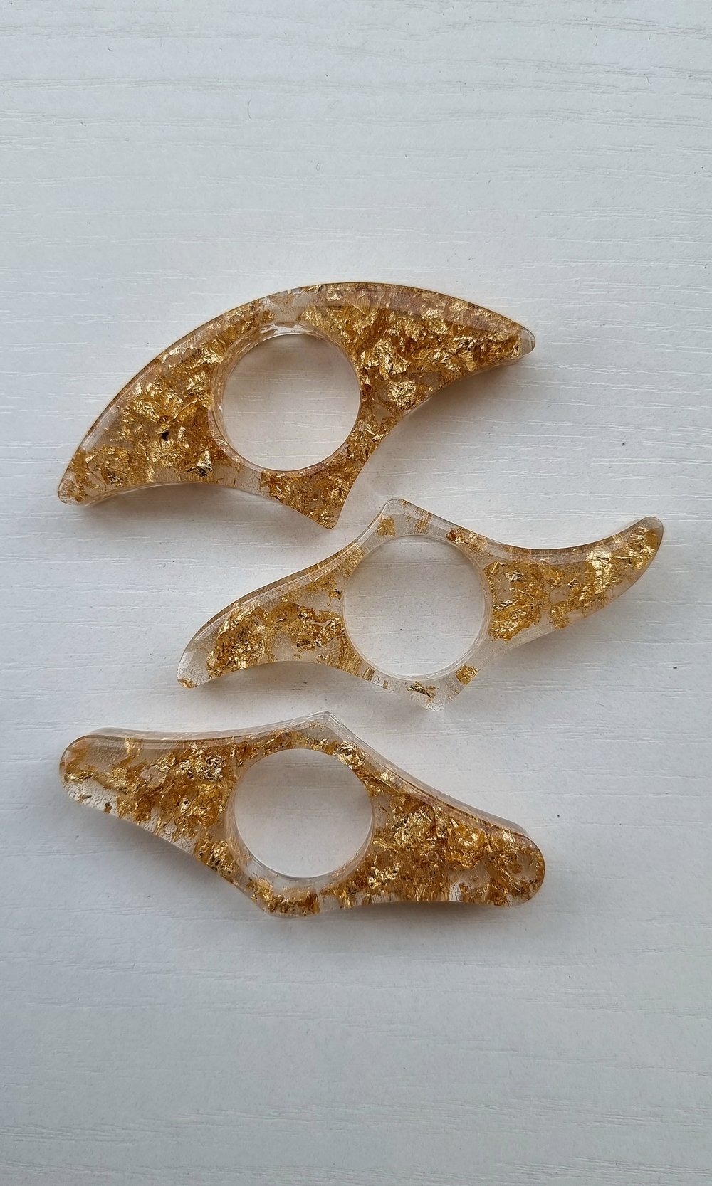 Jolie bague de lecture réalisé en résine epoxy; transparente avec feuilles doré.