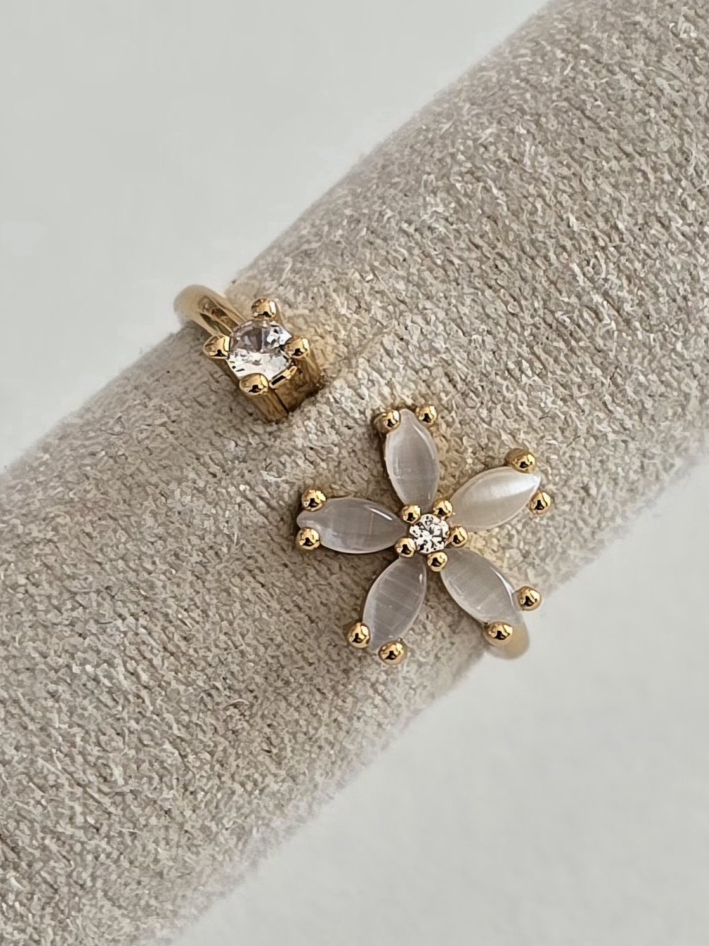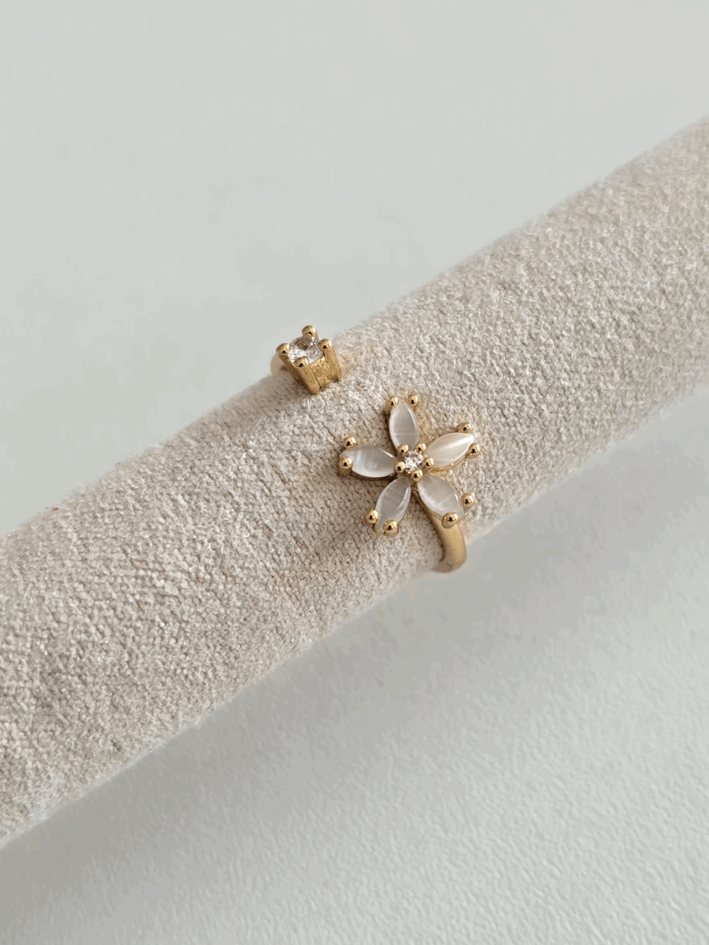 Avec sa structure dorée et sa fleur délicate de 0,9 cm, cette bague évoque la beauté éphémère des pétales scintillant sous le soleil. Chaque détail a été pensé pour apporter douceur et sophistication à votre style. Le strass de 0,3 cm, subtilement placé, ajoute une touche d’éclat, capturant la lumière à chaque mouvement.