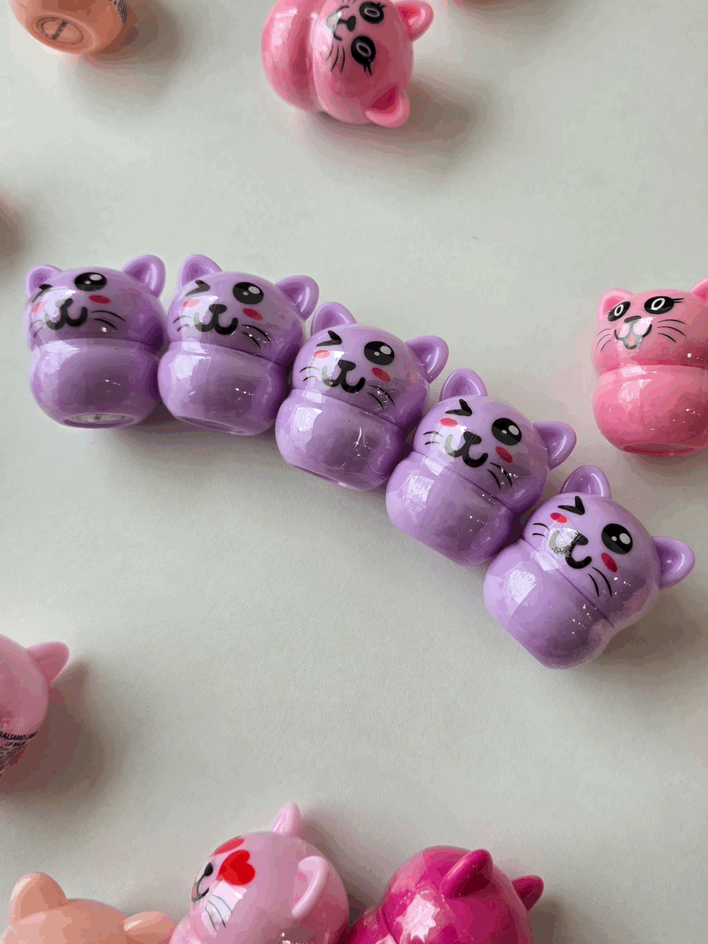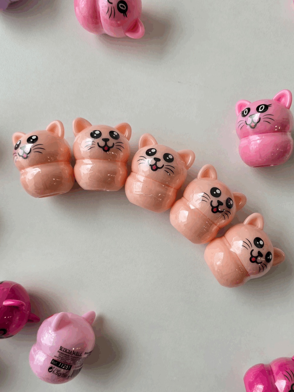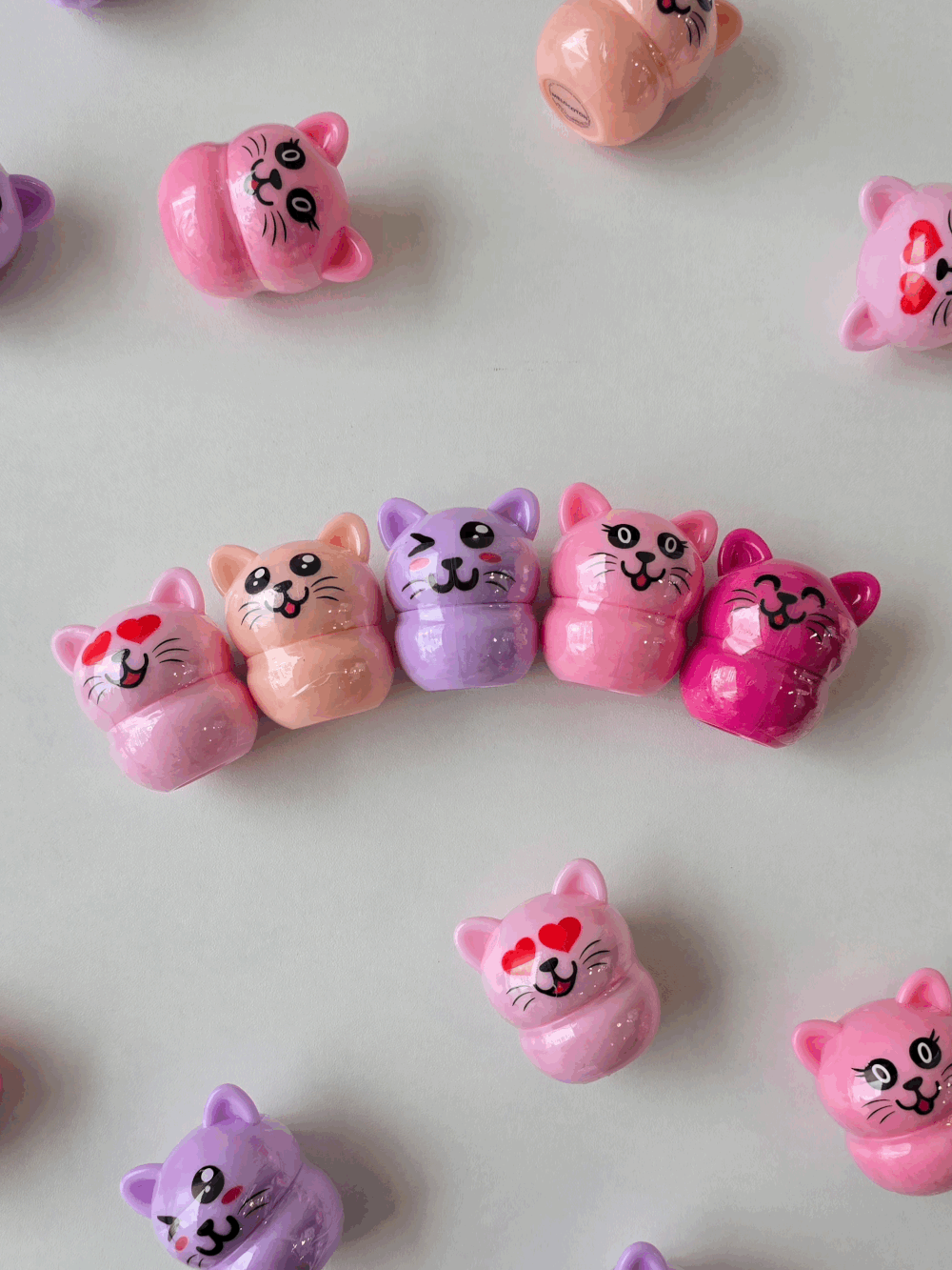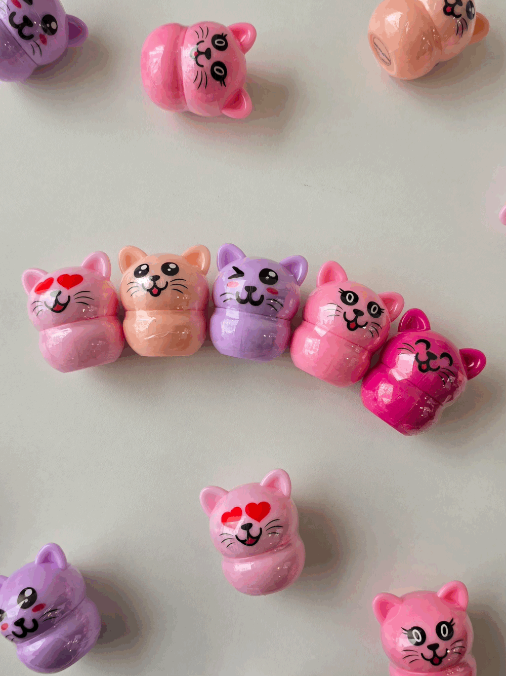 Ces petits baumes à lèvres sont conçus sous la forme d’une adorable tête de chat aux expressions variées, rendant chaque modèles unique et amusant. Avec leurs couleurs douces et leurs détails soignés, ils séduisent autant les petits que les grands ! Un accessoire parfait pour une trousse de beauté à la fois girly et originale.