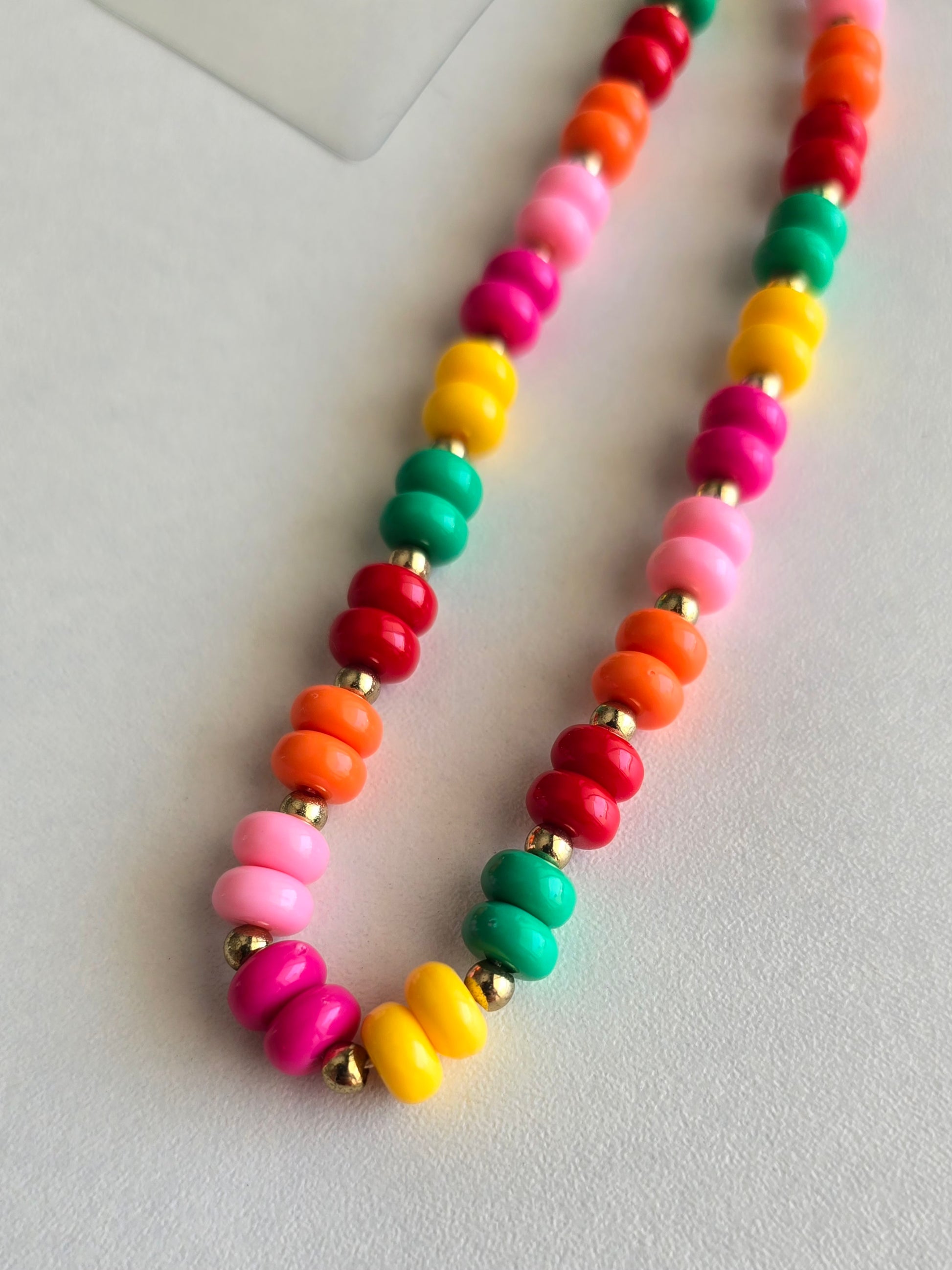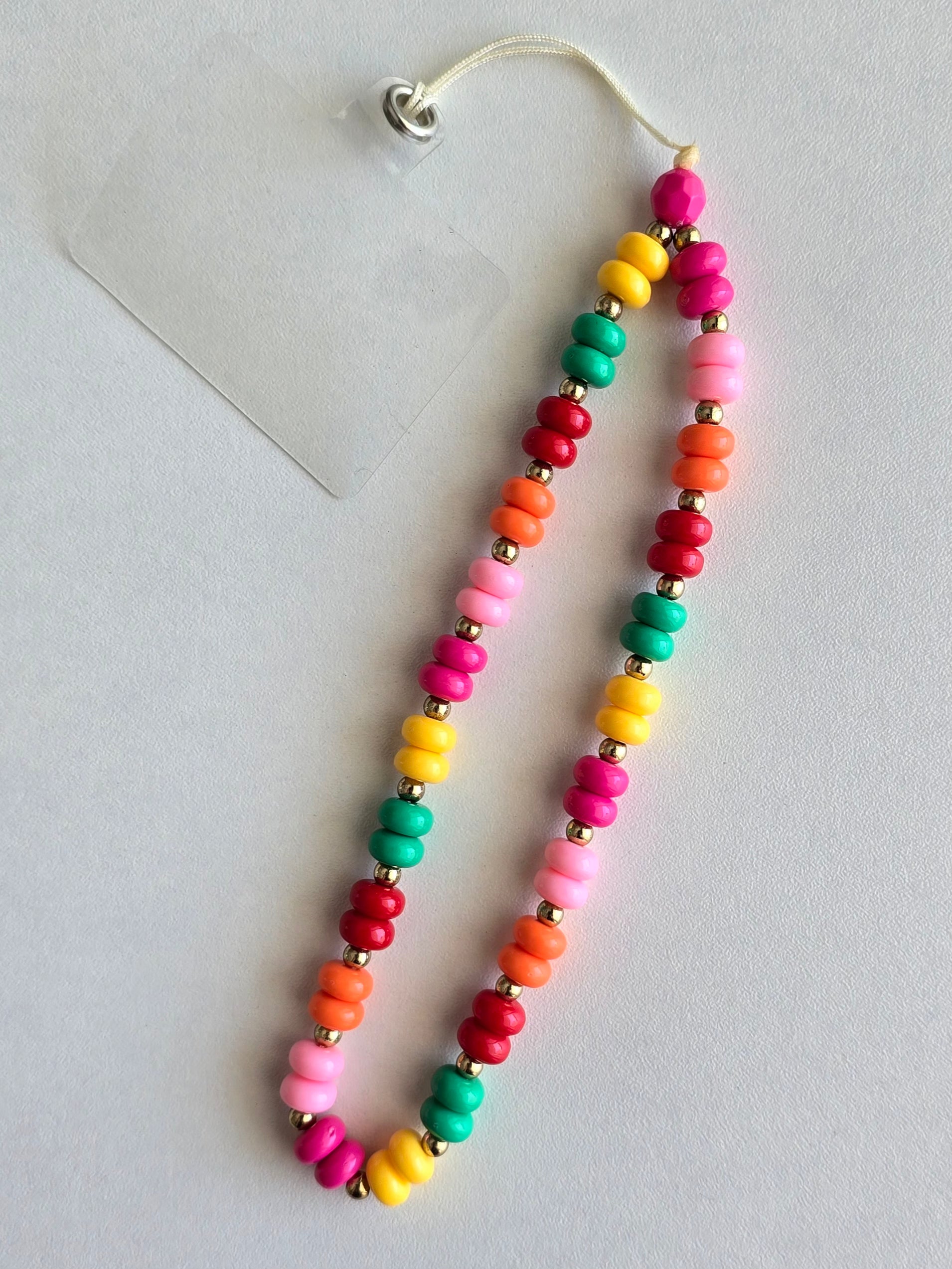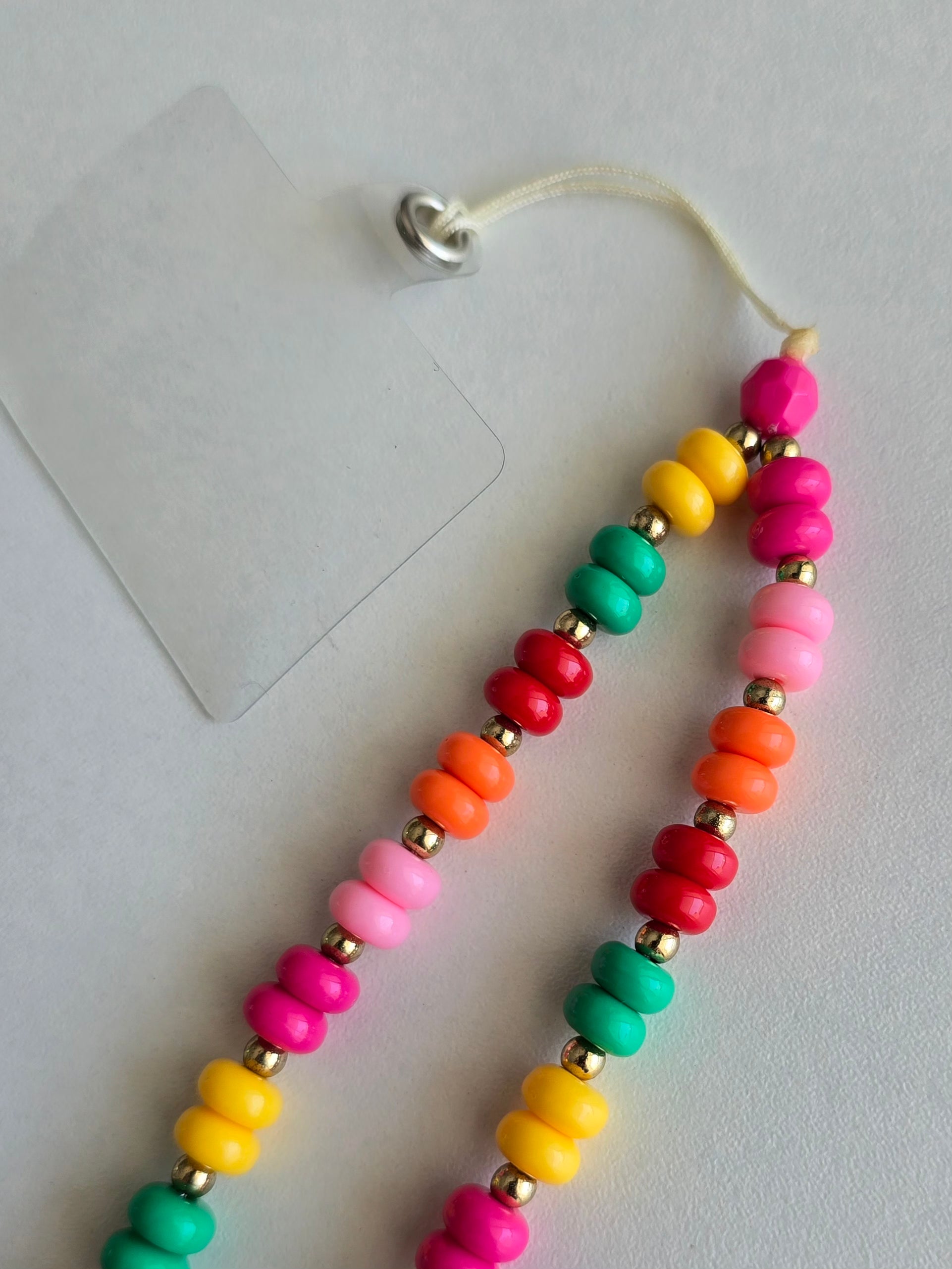 Apportez une touche fun et colorée à votre smartphone avec notre bijou de téléphone Candy Pop ! Ce bijou est composé de perles rondes aux couleurs vives (rose, orange, rouge, jaune, vert...) séparées par de petites perles dorées qui apportent une note chic et élégante. Idéal pour donner du peps à votre téléphone tout en le personnalisant selon votre style.