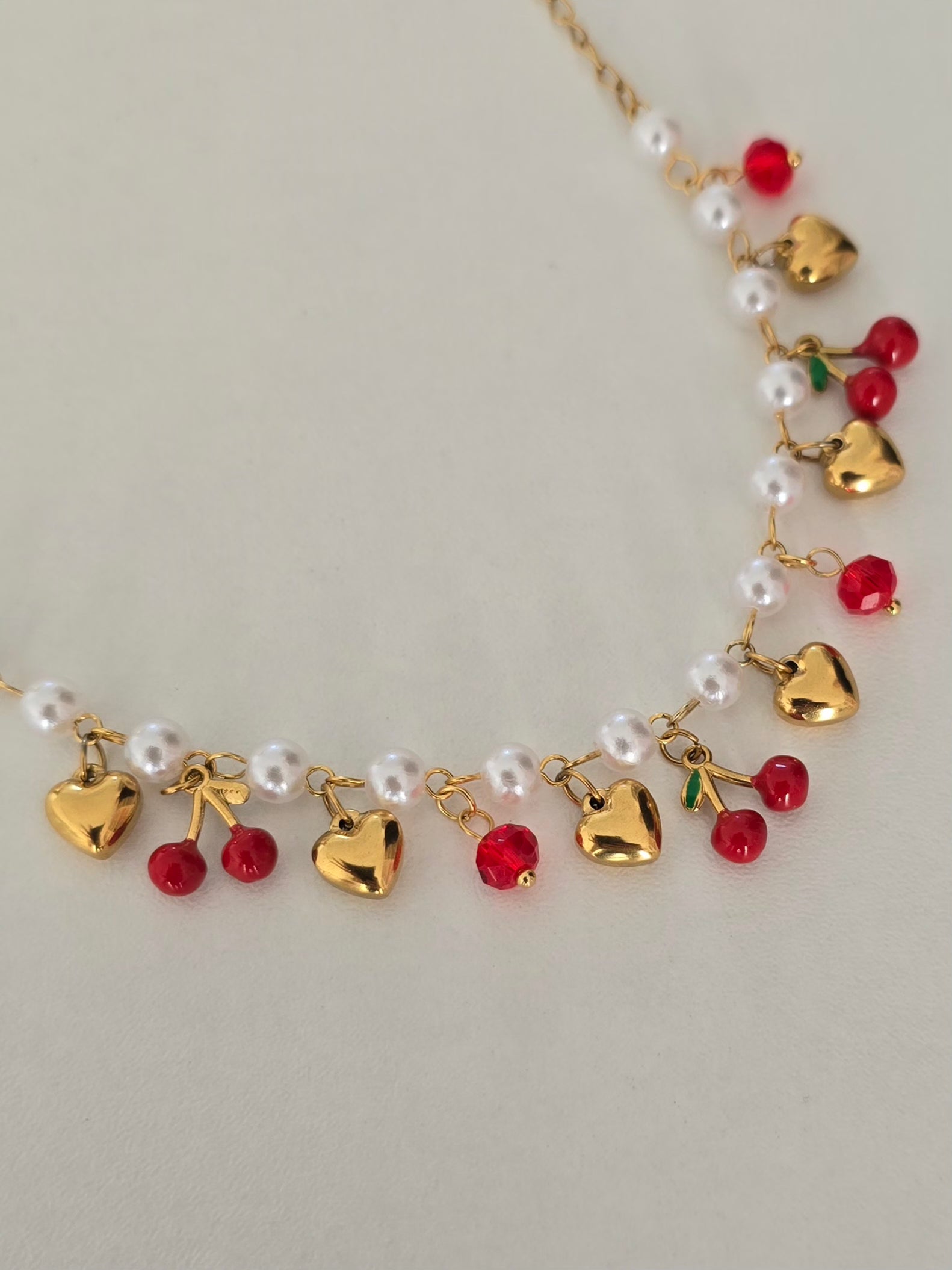 - Design : Une alternance harmonieuse de perles, coeurs, et cerises qui crée un bracelet à la fois chic et pétillant