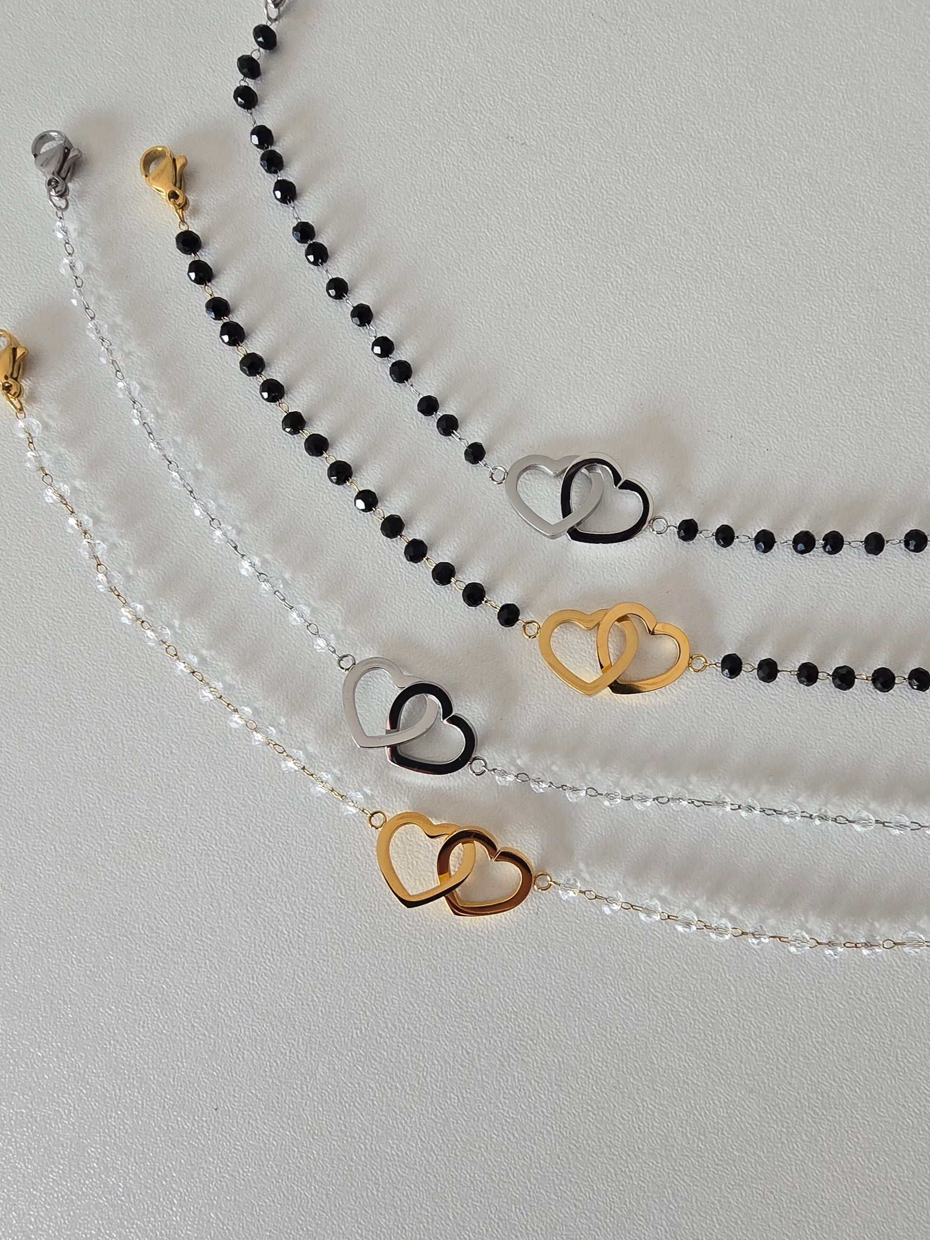 Laissez parler l'élégance intemporelle avec notre bracelet Infini, un bijou raffiné qui symbolise l'amour, l'union et l'éternité à travers ses deux coeurs entrelacés.