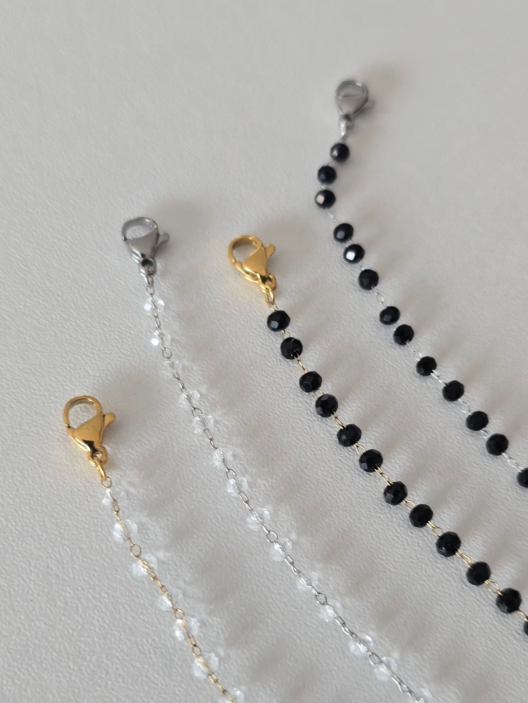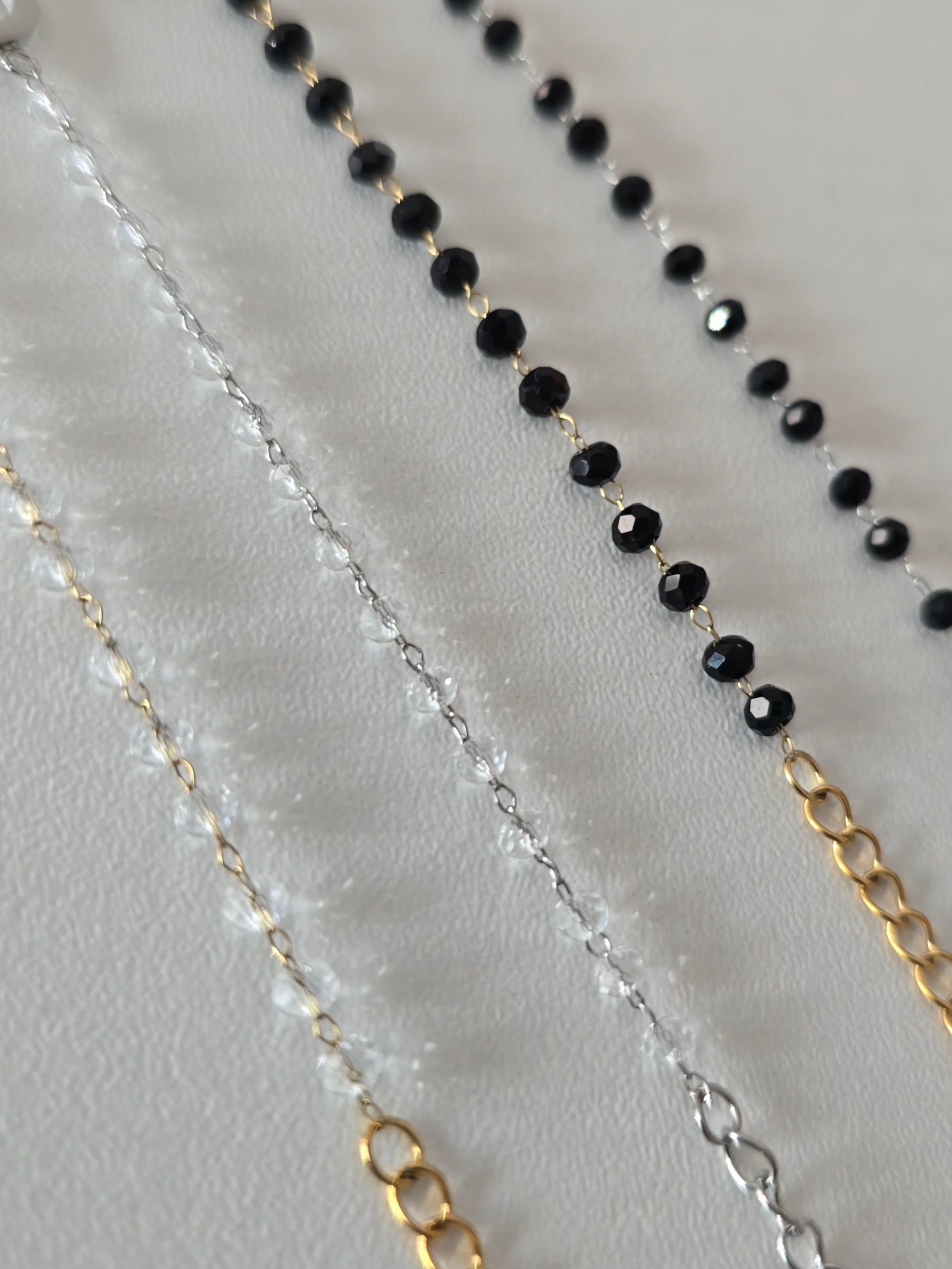 - Perles facettées élégantes qui reflètent subtilement la lumière.