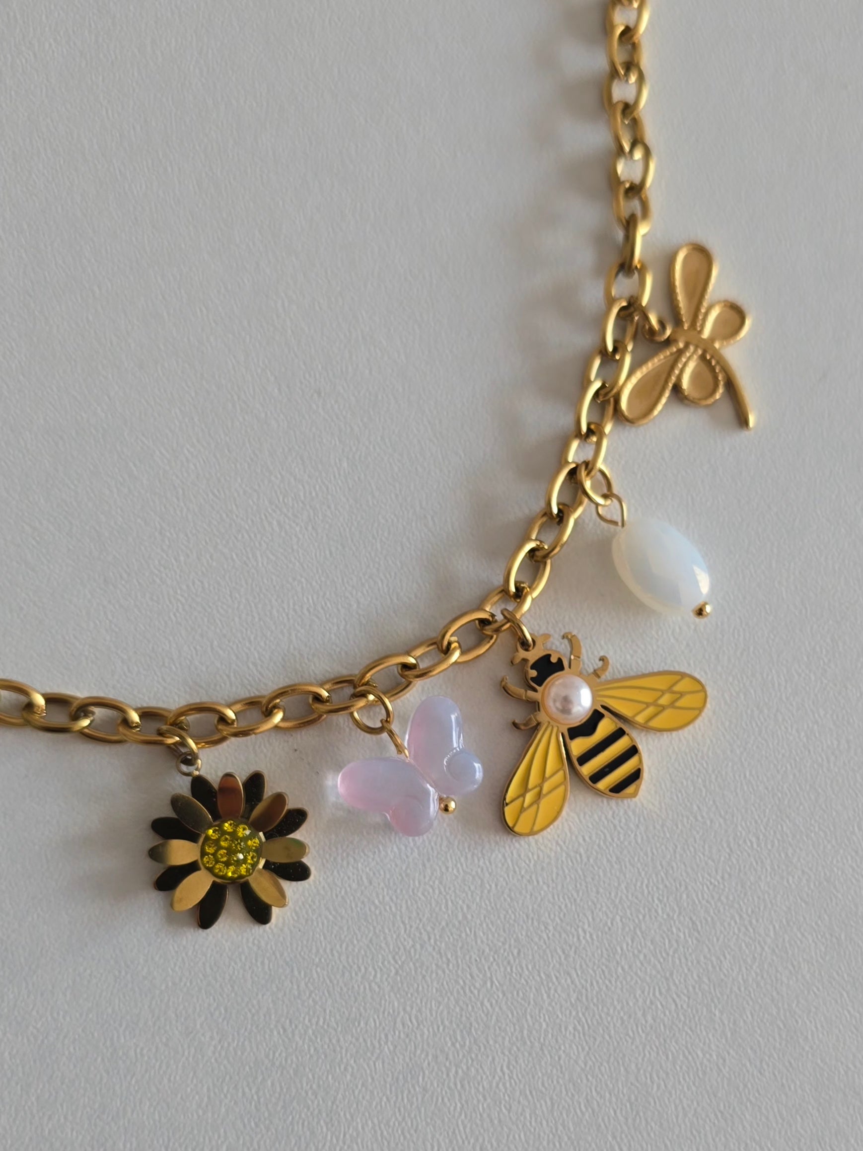 Apportez une touche de lumière et de poésie à vos looks avec Sunny, un bracelet raffiné en acier inoxydable doré, orné de charms délicats inspirés de la nature. À la fois chic et plein de fraîcheur, il sera votre allié idéal pour sublimer vos tenues au quotidien comme lors d'occasions spéciales.