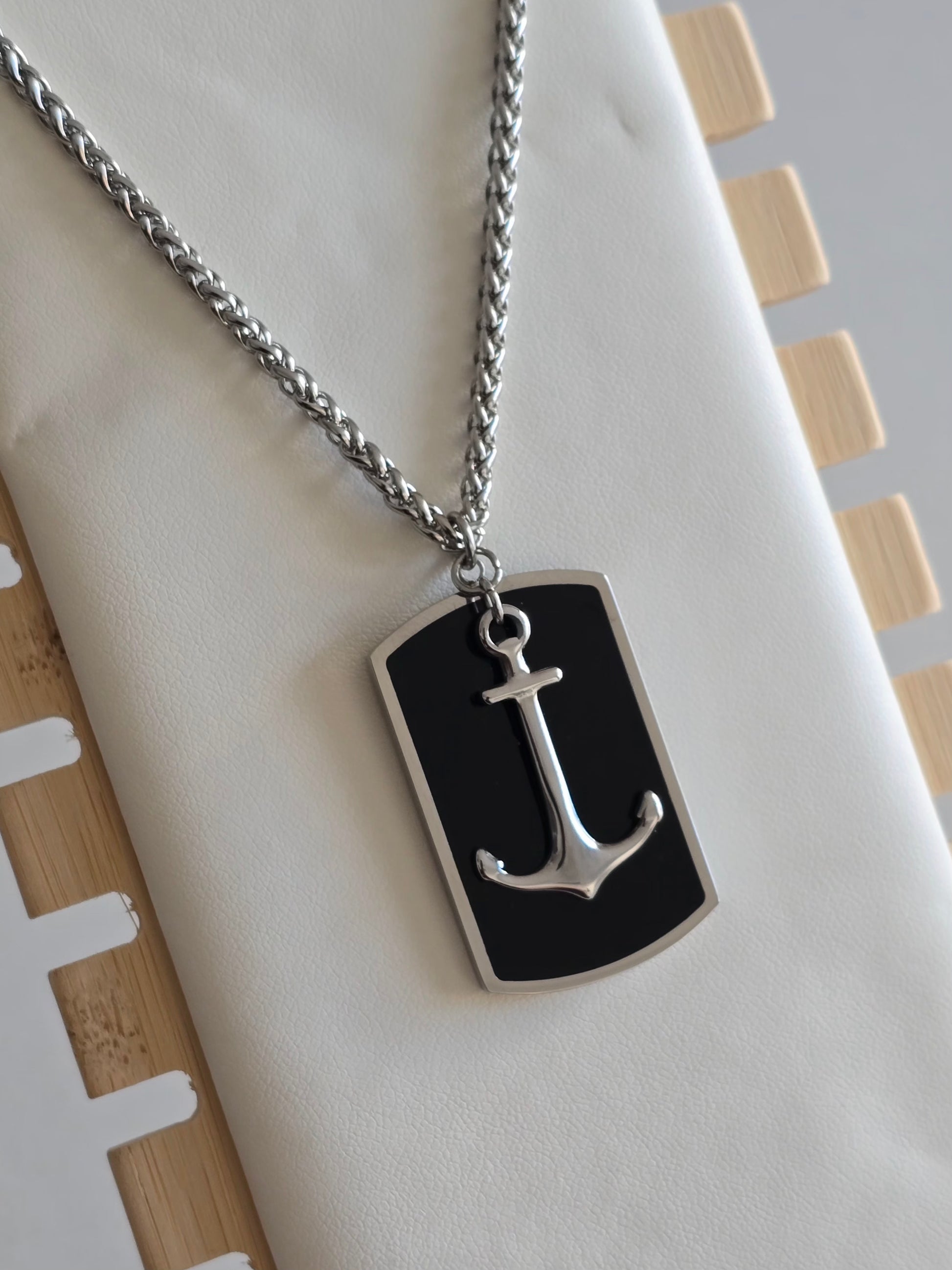 - Design unique et symbolique : un pendentif rectangulaire noir brillant (4 x 2,5 cm) sublimé par une ancre argentée (3 x 2 cm), symbole de stabilité, d'aventure et de liberté.