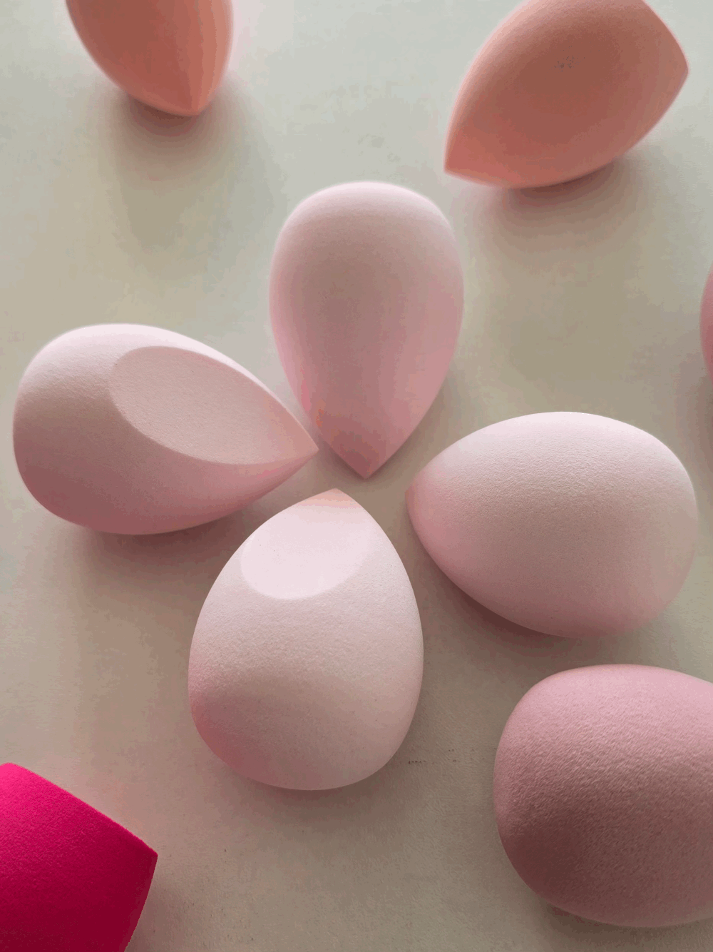 Déclinées dans une gamme de teintes rosées, ces éponges allient efficacité et esthétisme. Chaque couleur peut être attribuée à un type de produit ou d’usage, pour une routine encore plus pratique et stylée.