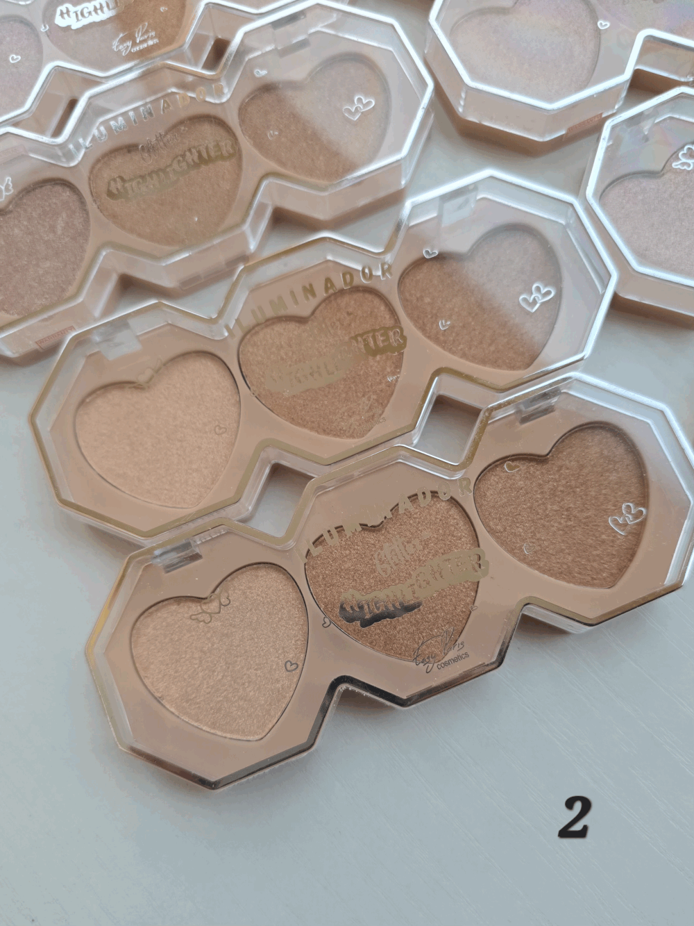 Illuminez votre visage avec la poudre illuminatrice Glitter Blush Highlighter de Easy Paris Cosmetics, le produit incontournable pour sublimer votre routine beauté. Avec sa palette élégante et ses trois nuances en forme de petits coeurs, cette poudre illumine votre teint tout en ajoutant une touche de glamour et d’éclat.