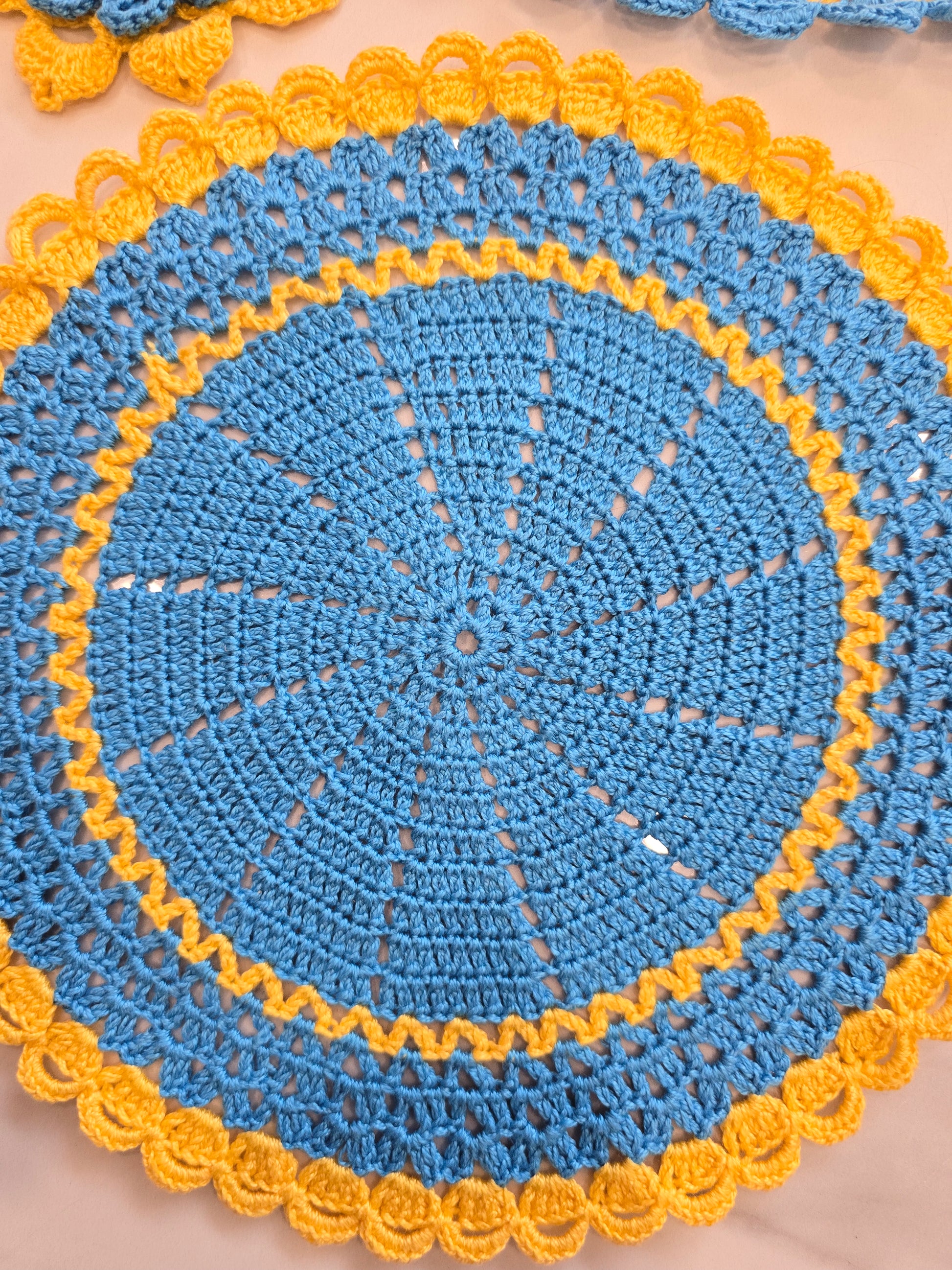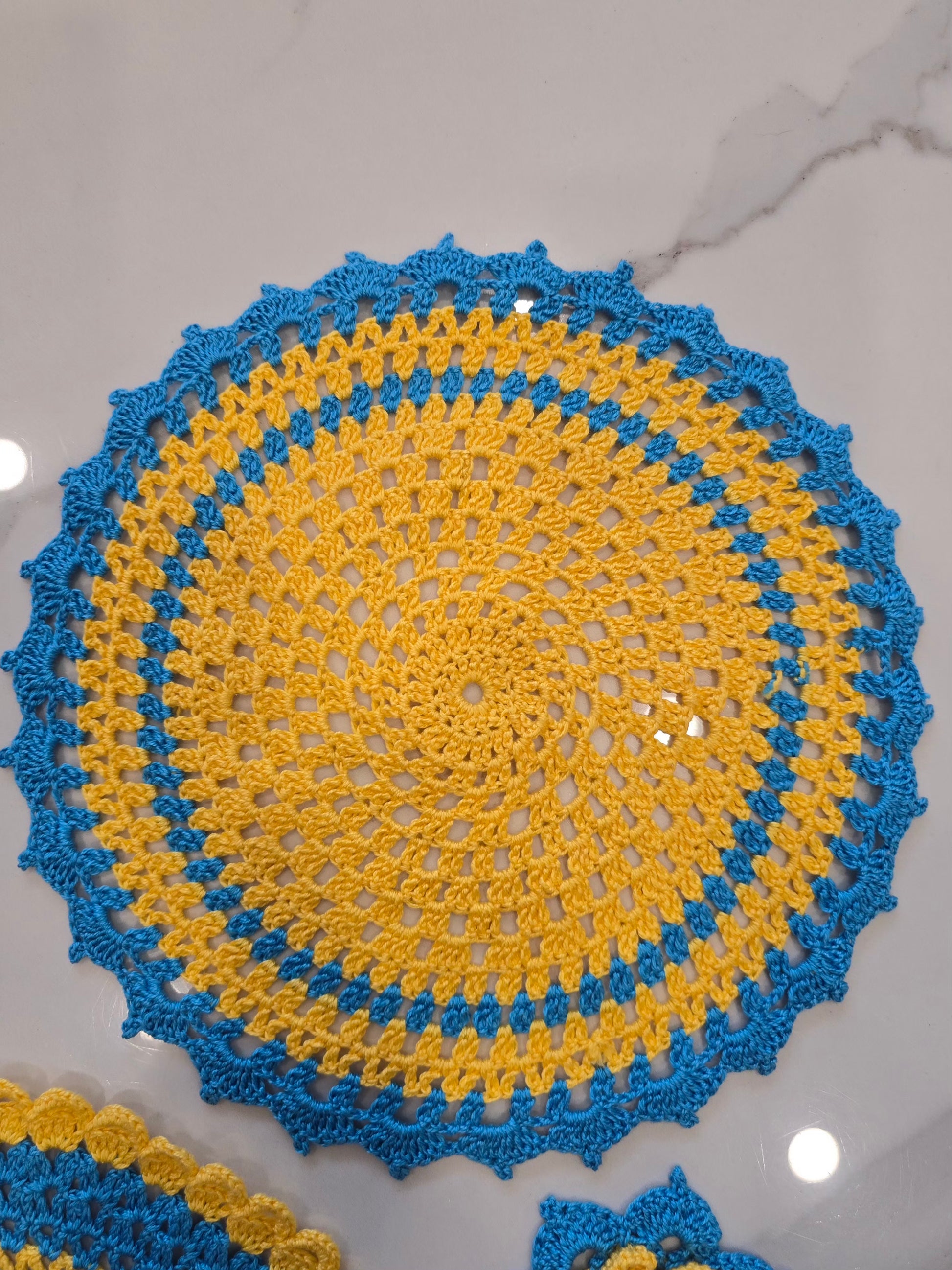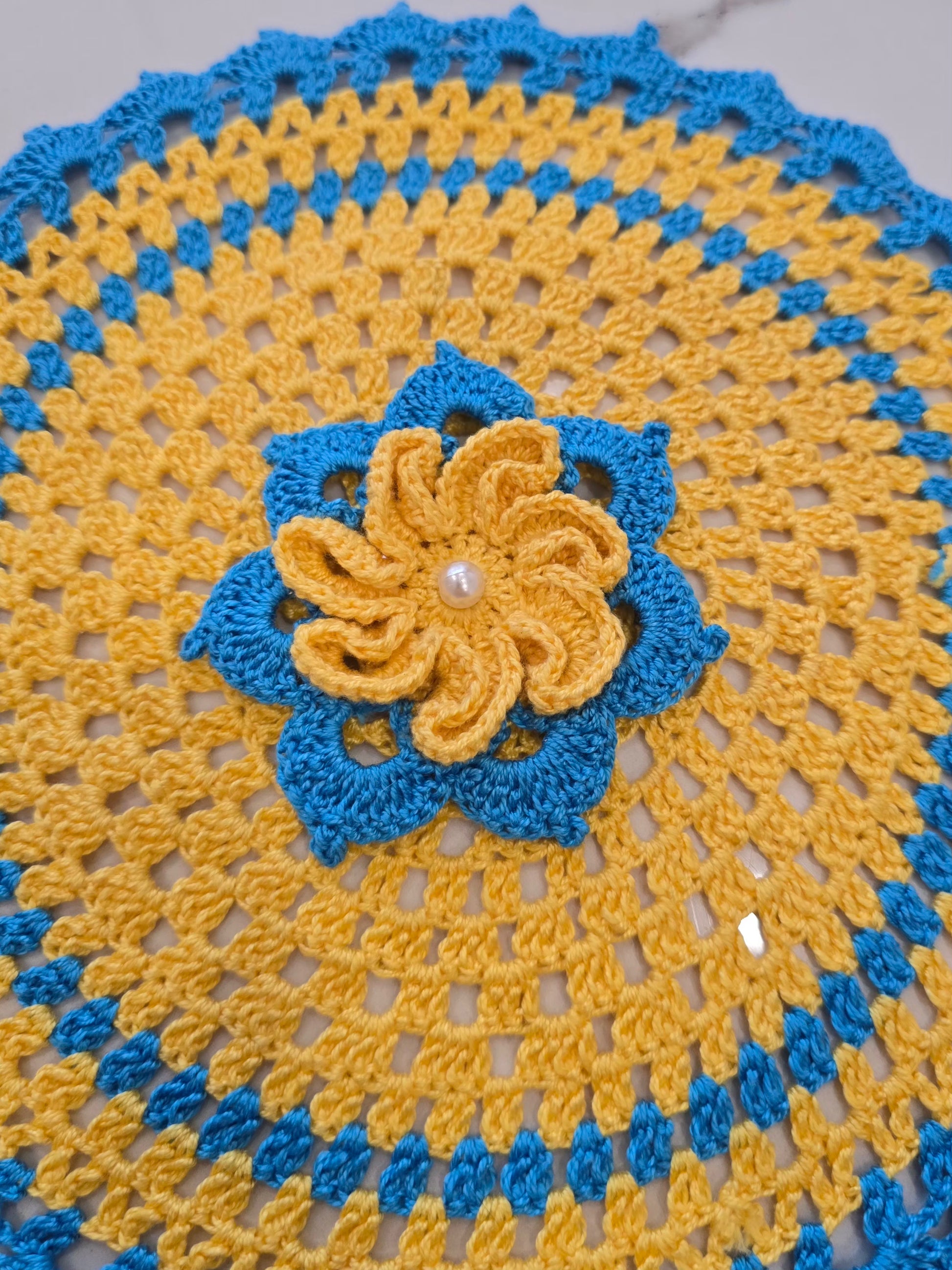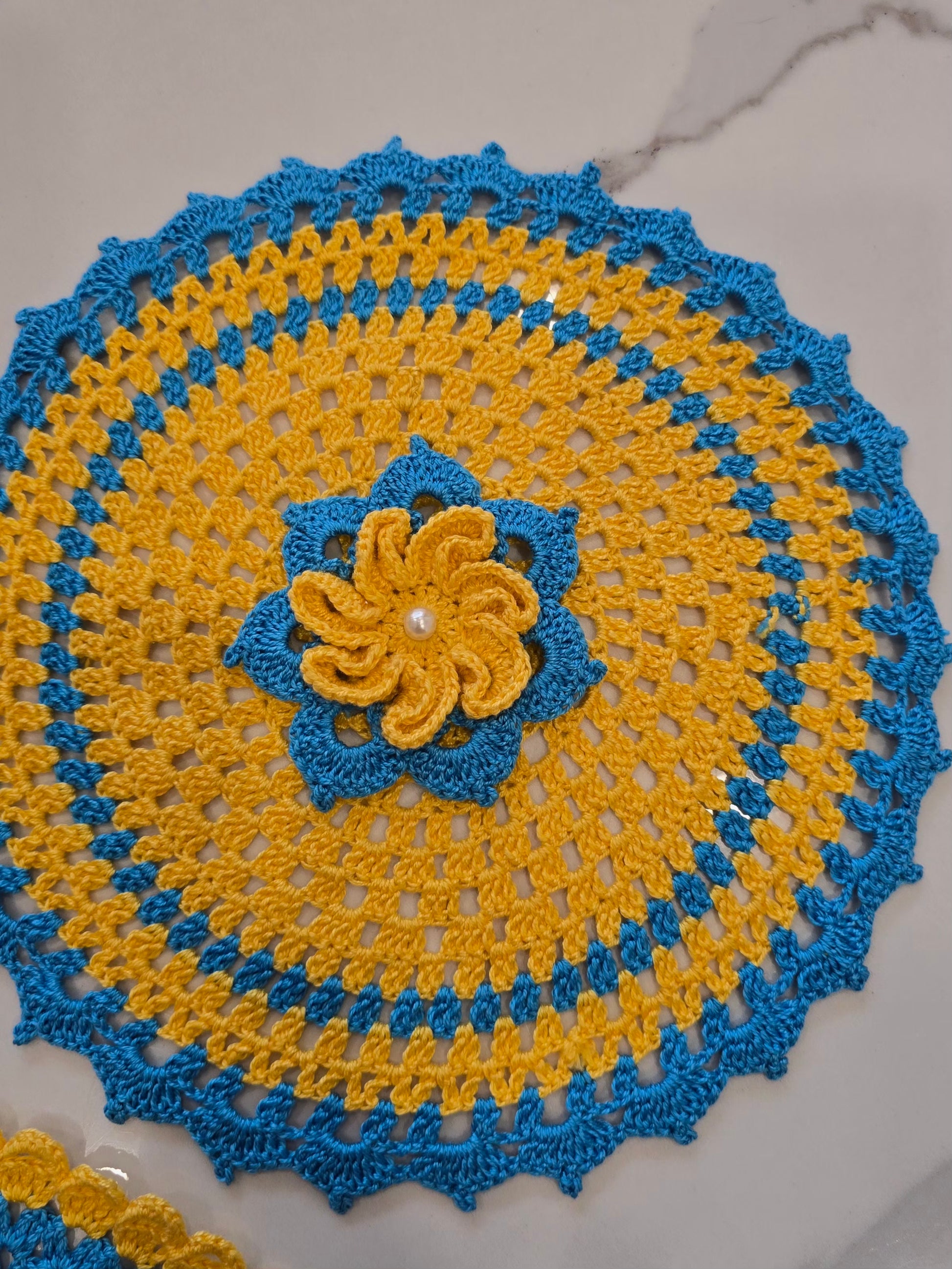 Utilisation : Idéal pour décorer une table, un meuble ou un plateau. Les fleurs peuvent être posées sur les napperons ou utilisées séparément comme accessoire décoratif. Un ensemble ensoleillé qui apporte une touche artisanale et joyeuse à votre intérieur.
