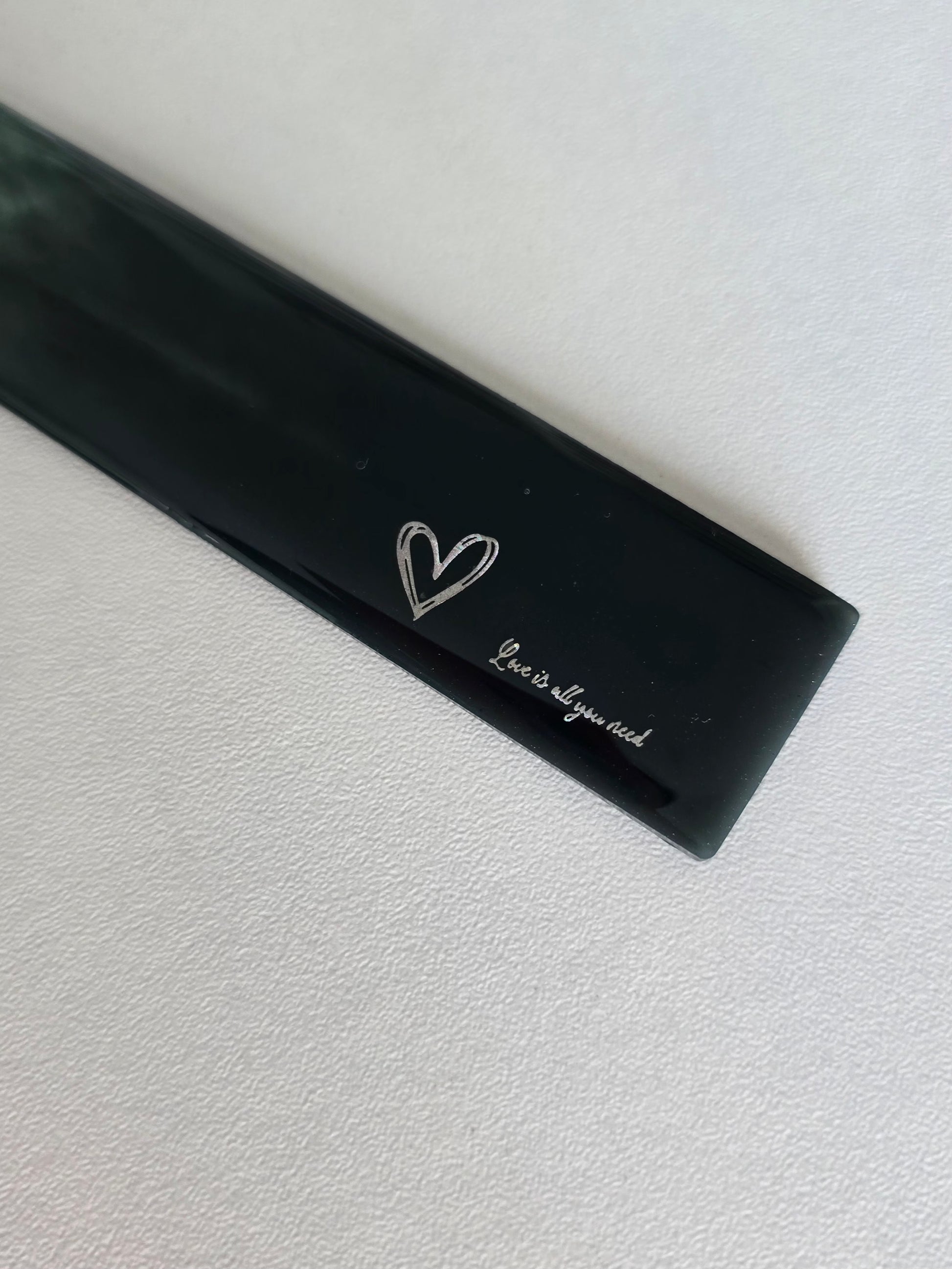 Un délicat motif argenté composé d'un petit coeur et de la phrase "Love is all you need" ("L'amour est tout ce dont vous avez besoin") vient orner ce marque-page, lui conférant une touche romantique et inspirante.
