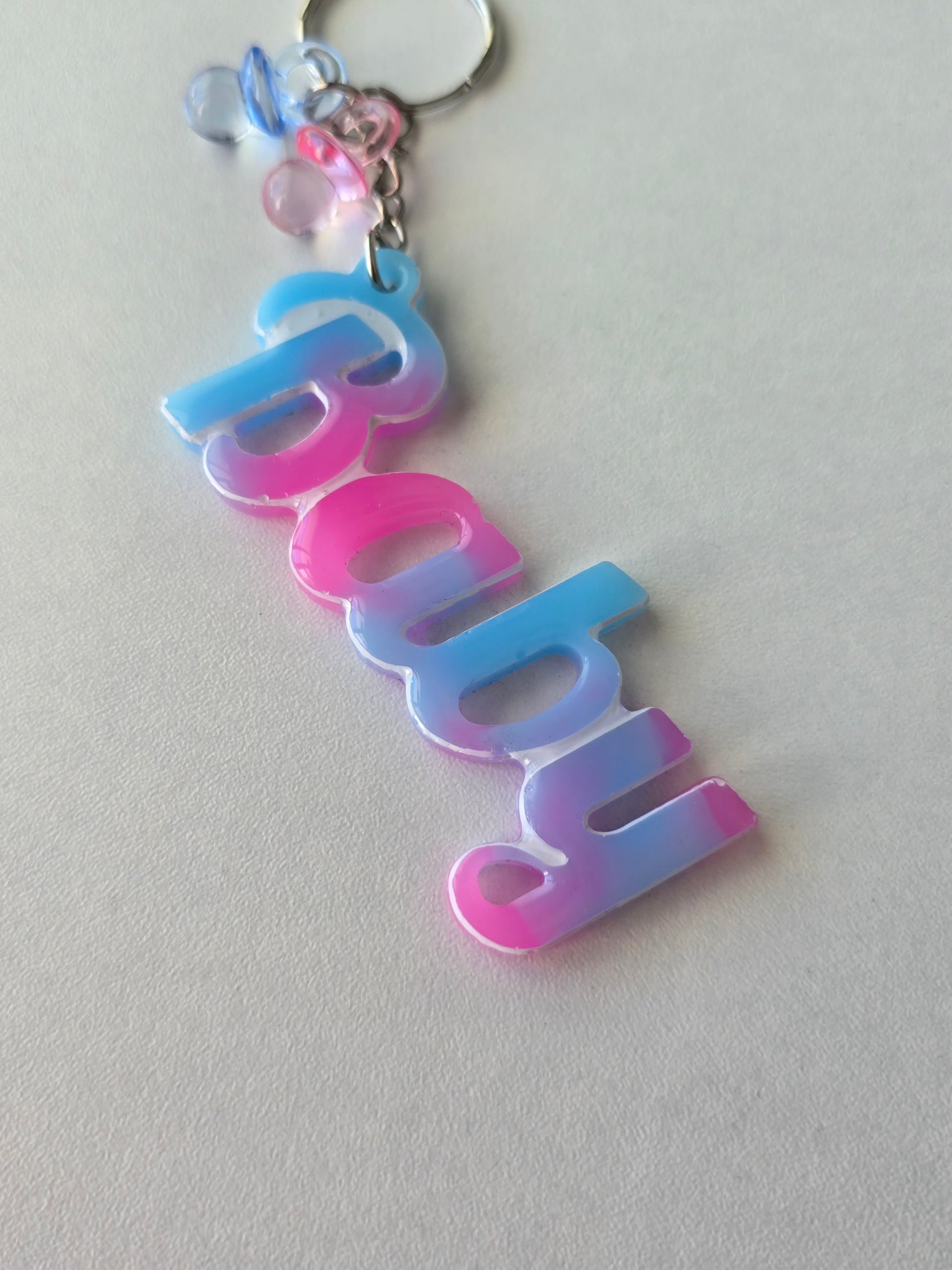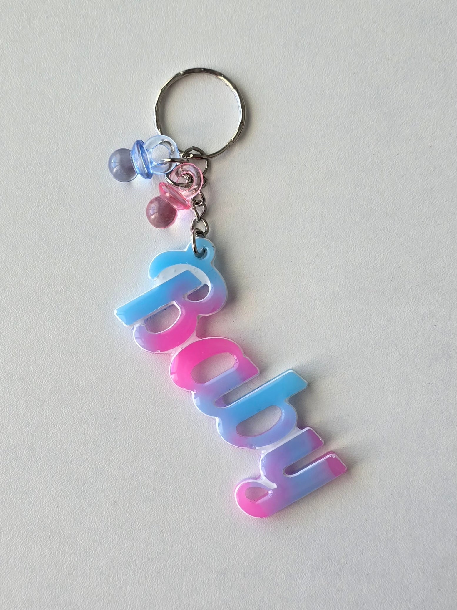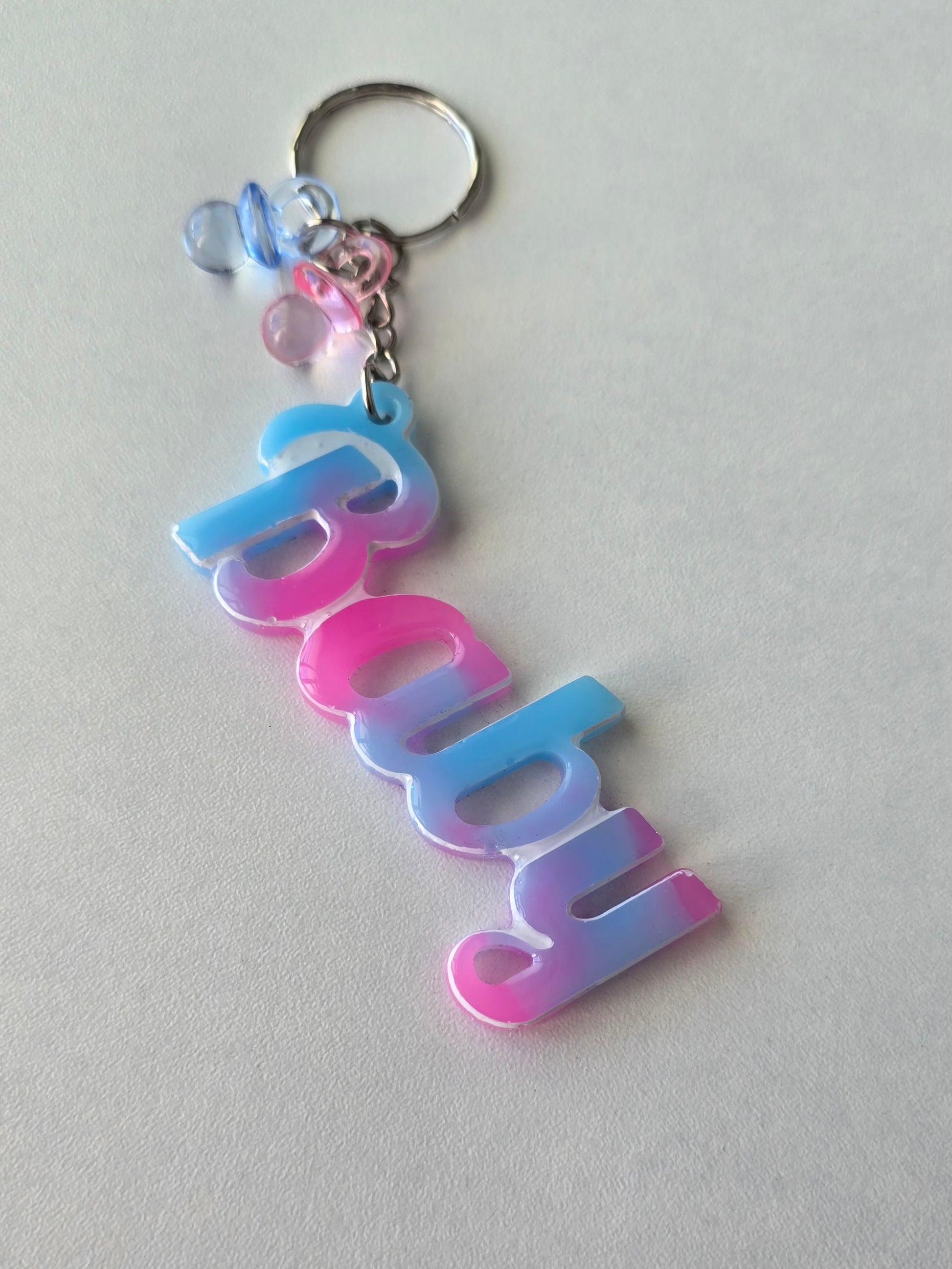 - Mot "Baby" en résine epoxy : Dégradé rose et bleu avec de jolis contours blancs pour un effet lumineux et raffiné.