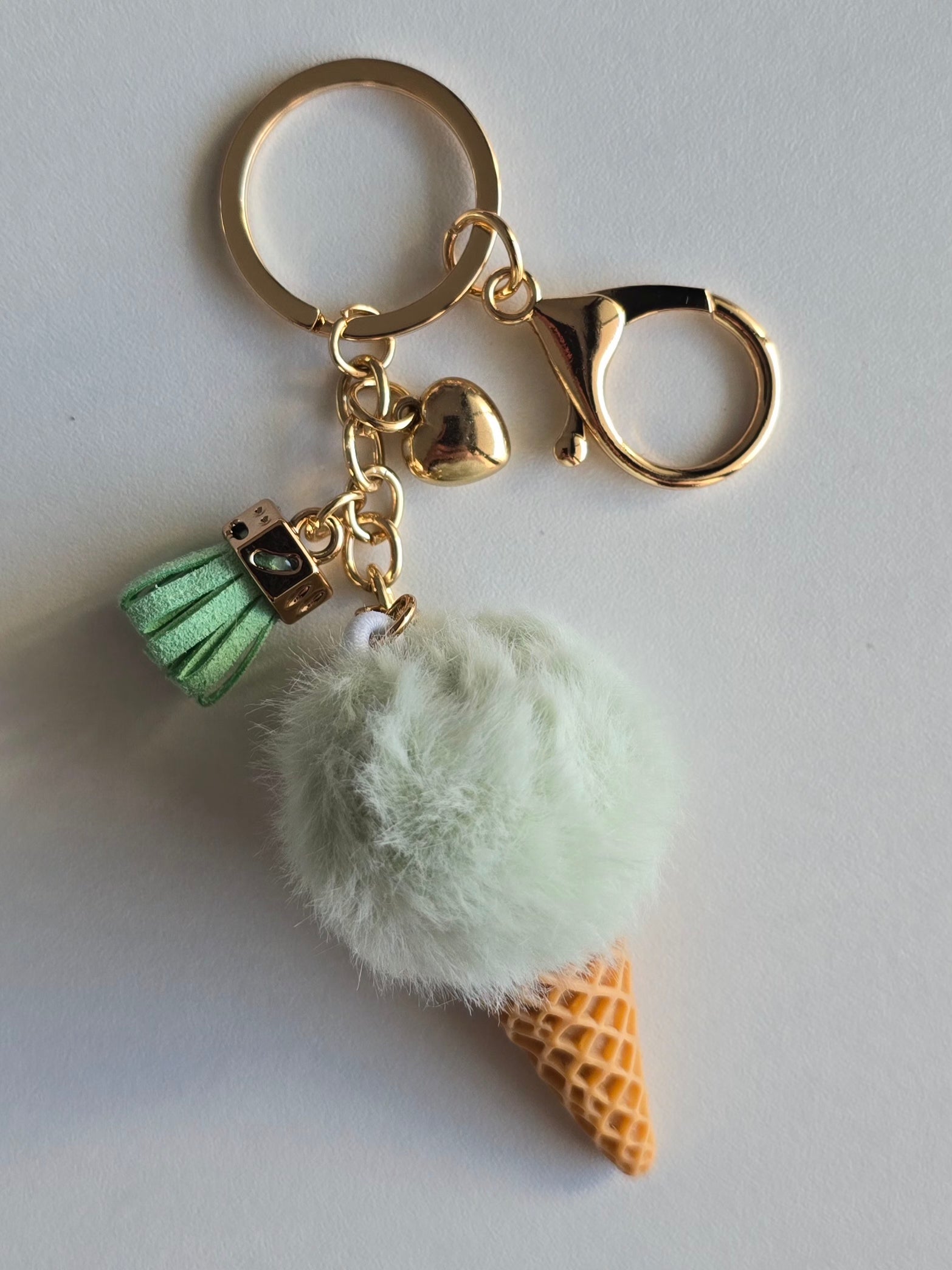 Craquez pour nos adorables porte-clés Glaces qui allient douceur, fun et élégance ! Avec leur cône en résine ultra-réaliste et leur pompon moelleux, ils apportent une touche sucrée et originale à vos clés, sacs à main ou trousses.