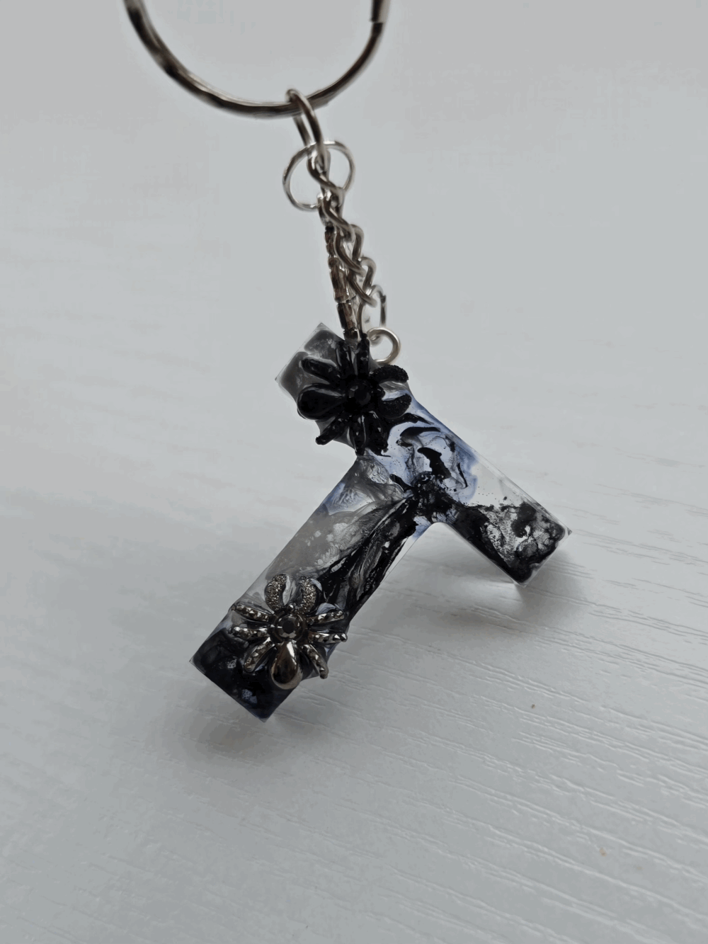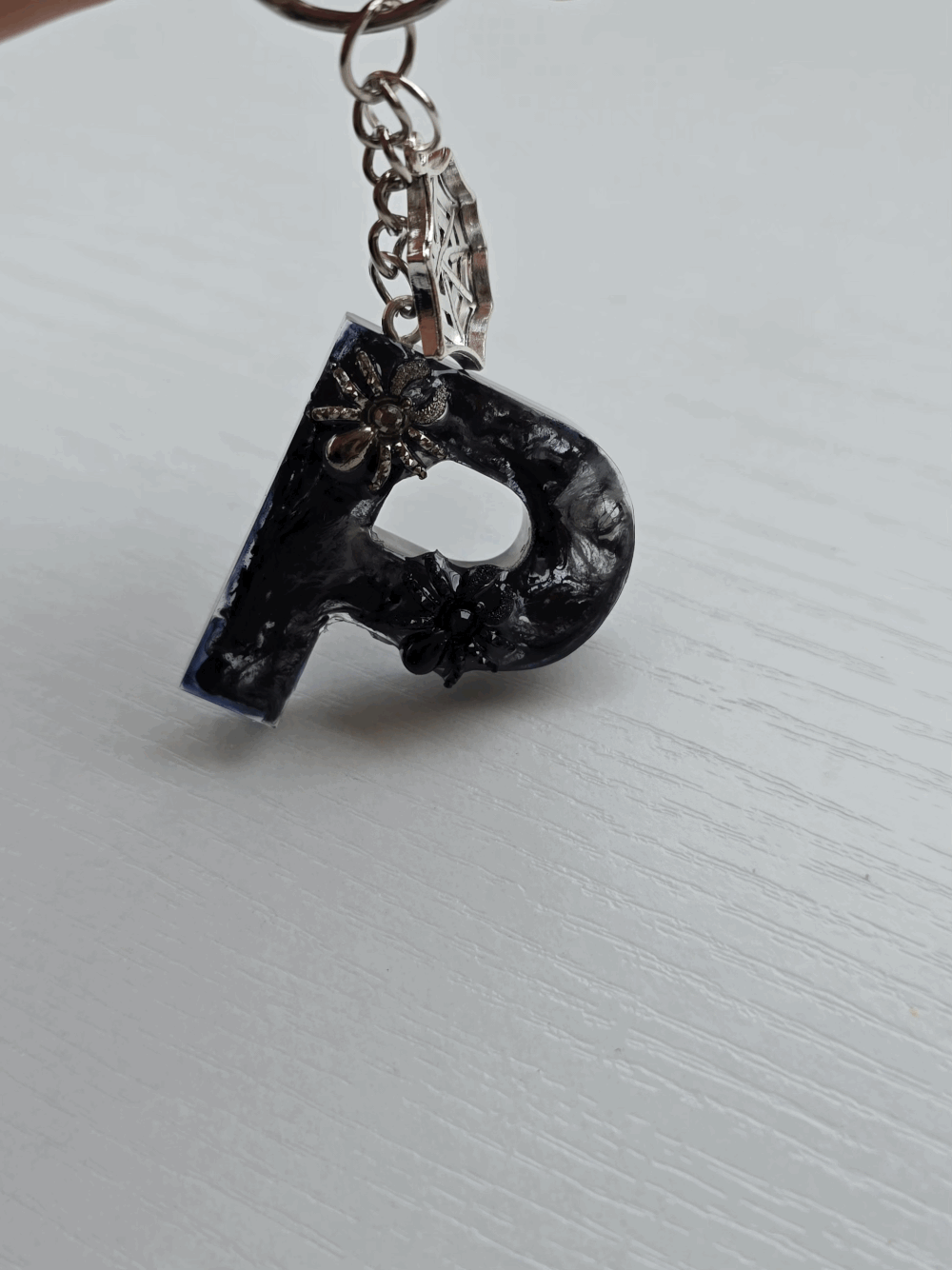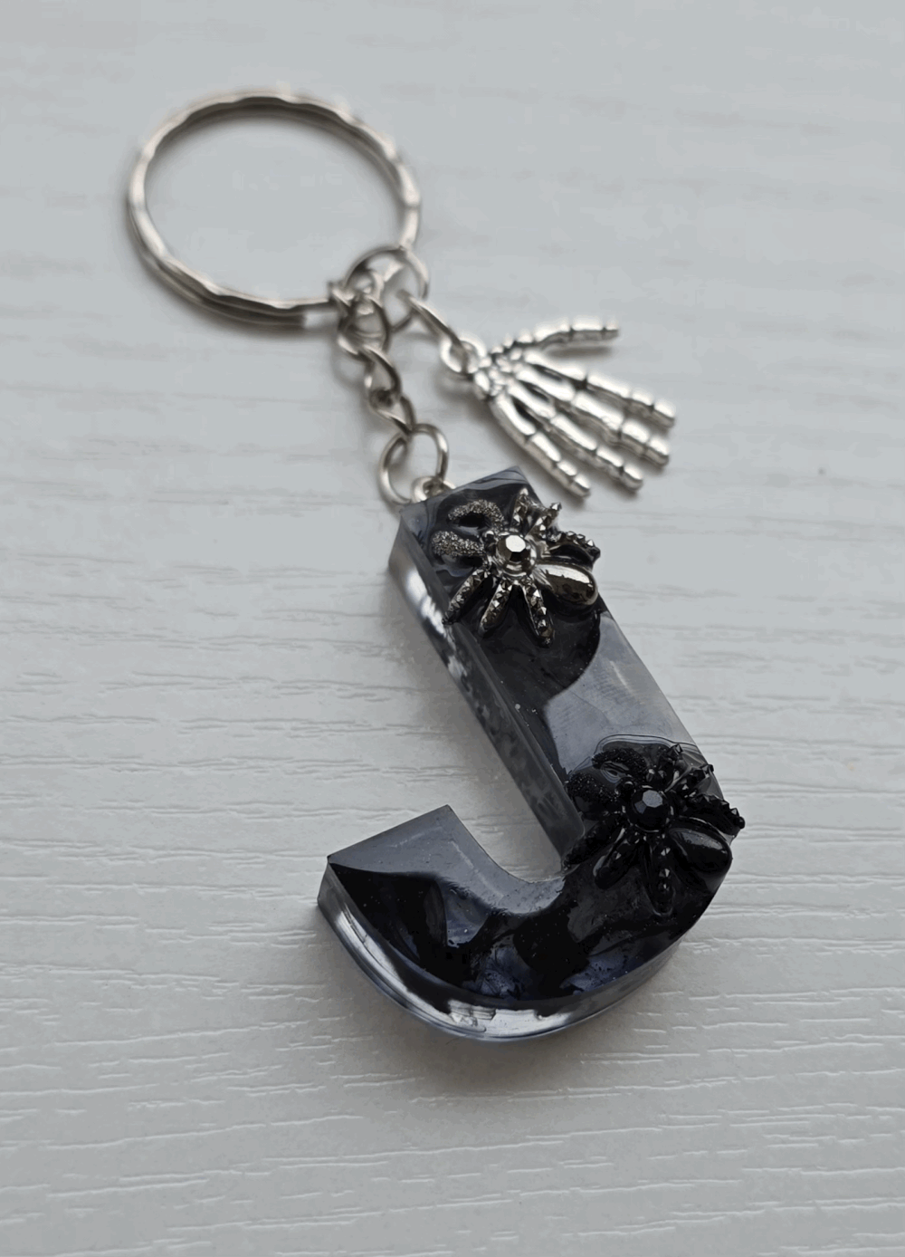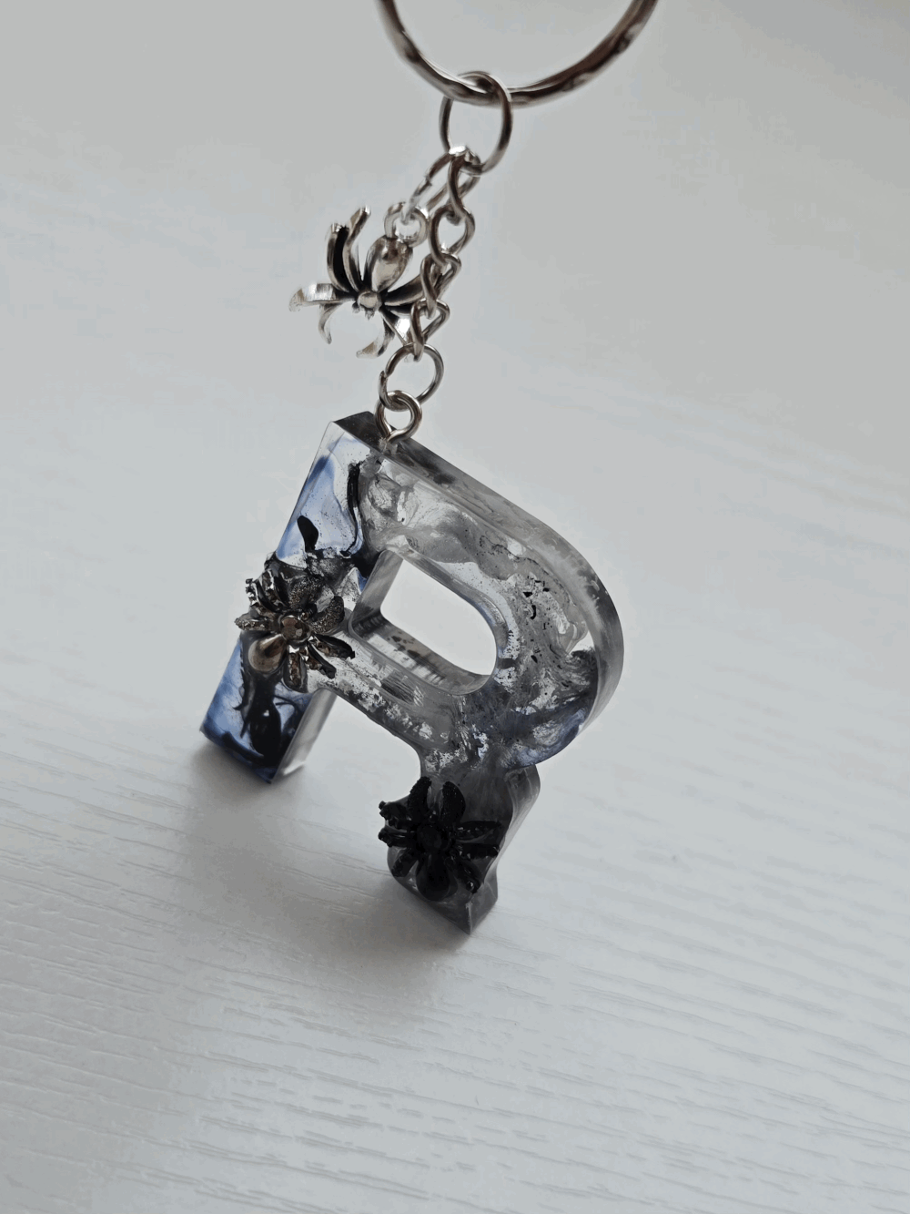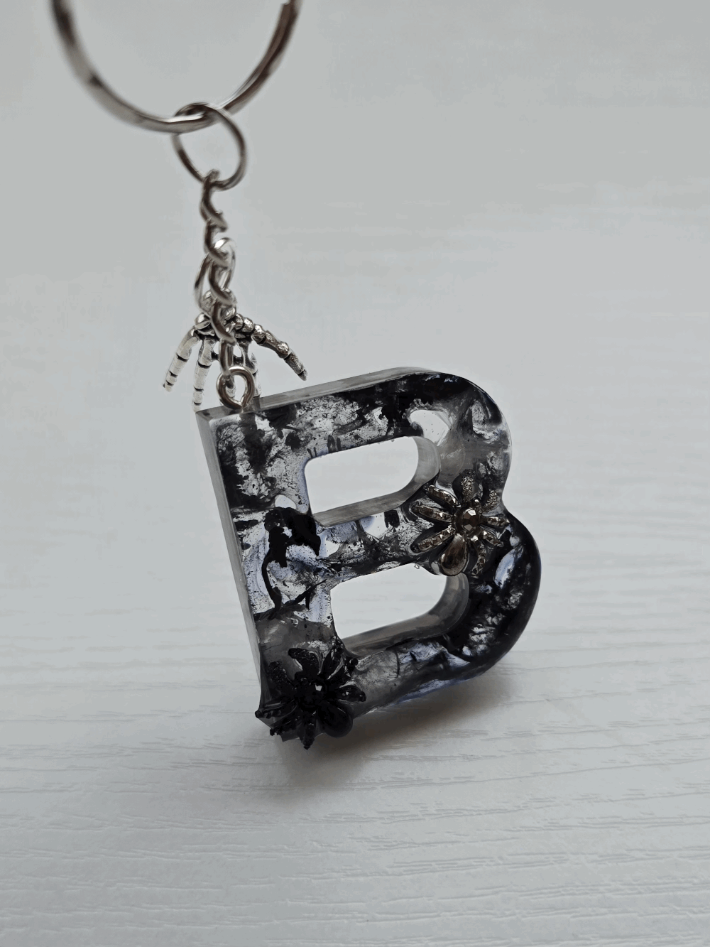 Chaque pièce unique présente un élégant effet fumé à l'intérieur, créant un mystérieux nuage qui semble emprisonné dans la résine. Pour un look encore plus captivant, de petites décorations en forme d'araignée sont délicatement posées sur la surface, ajoutant une touche sinistre et effrayante. Les porte-clés sont également ornés de breloques assorties, ajoutant une finition charmante et thématique.