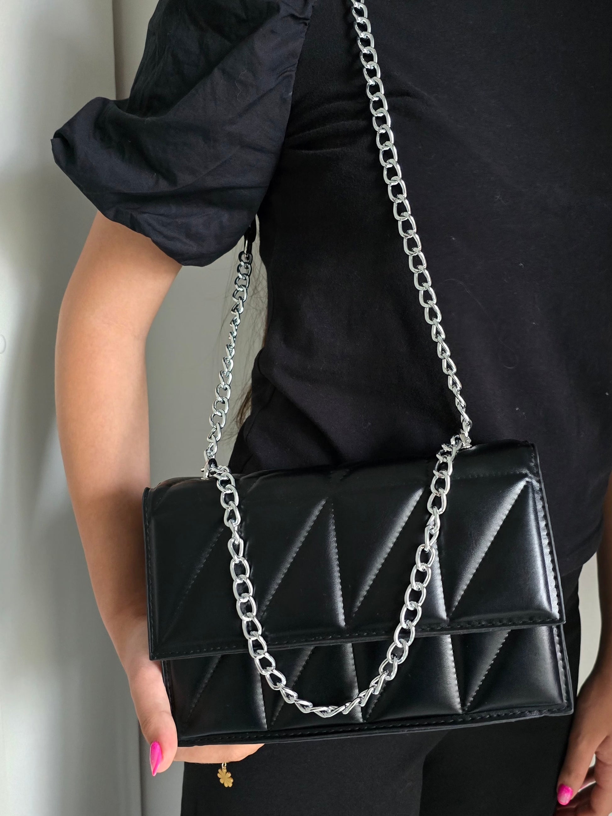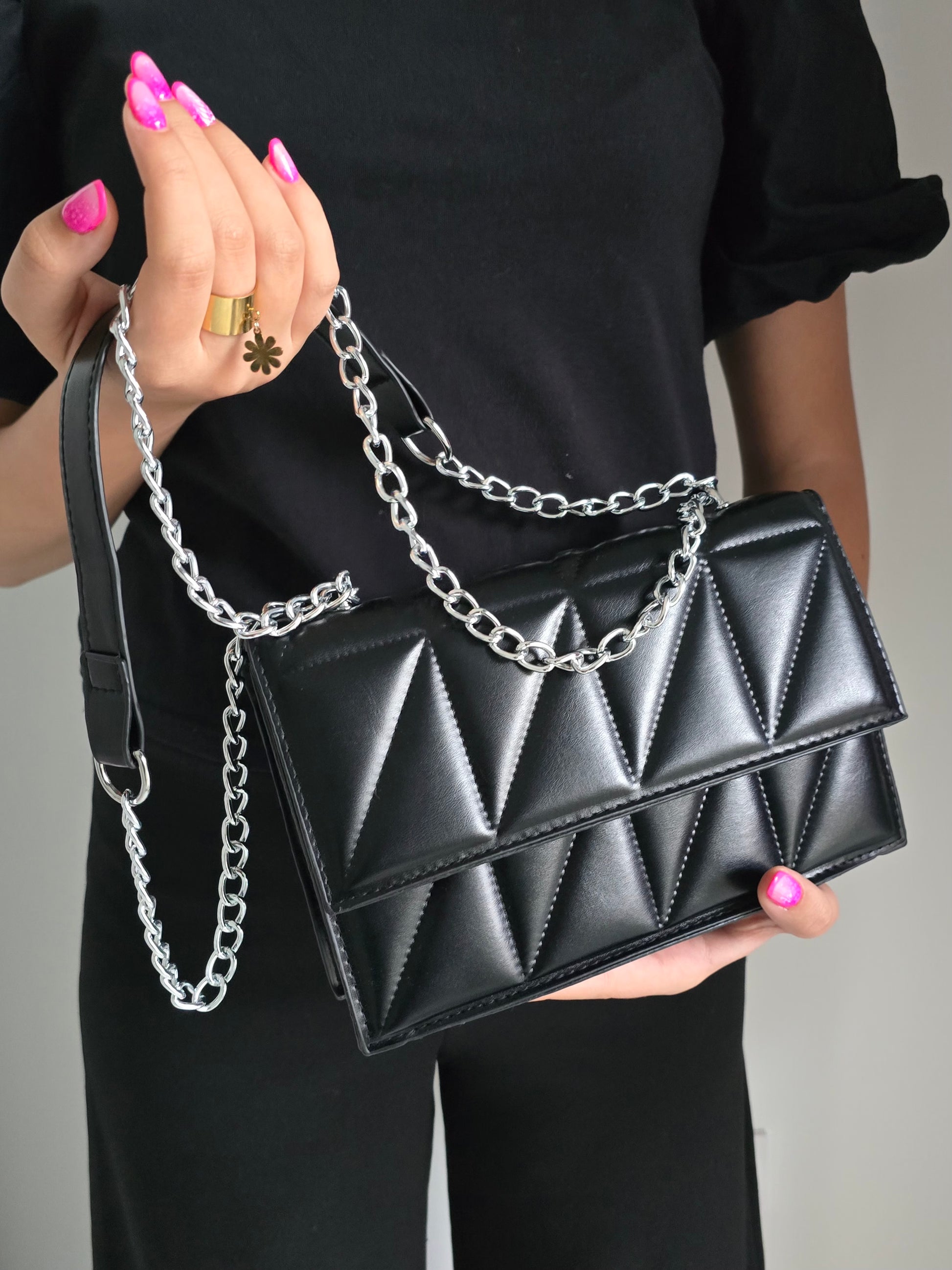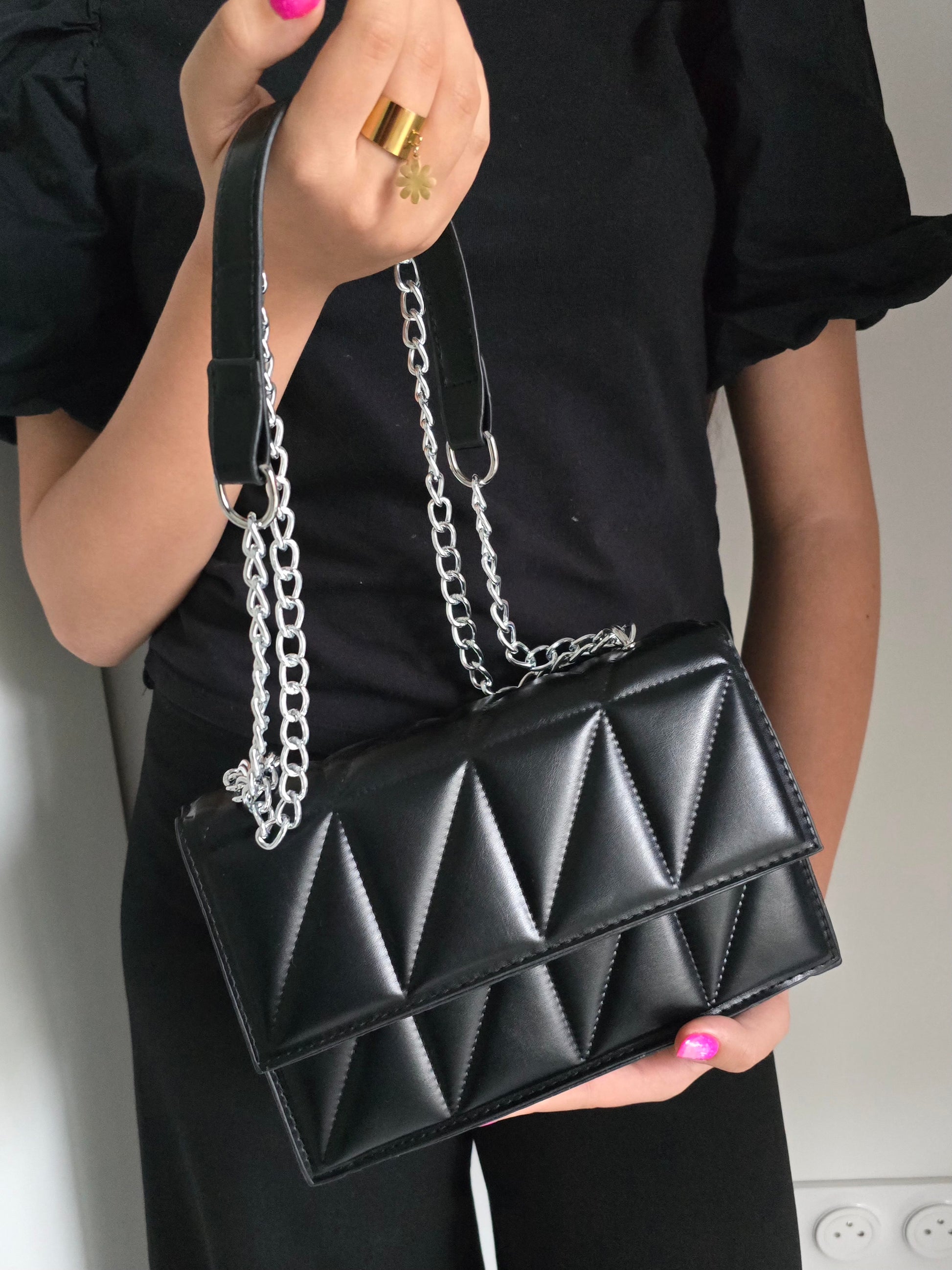 Chaîne argentée : porté épaule, bandoulière ou à la main selon vos envies.