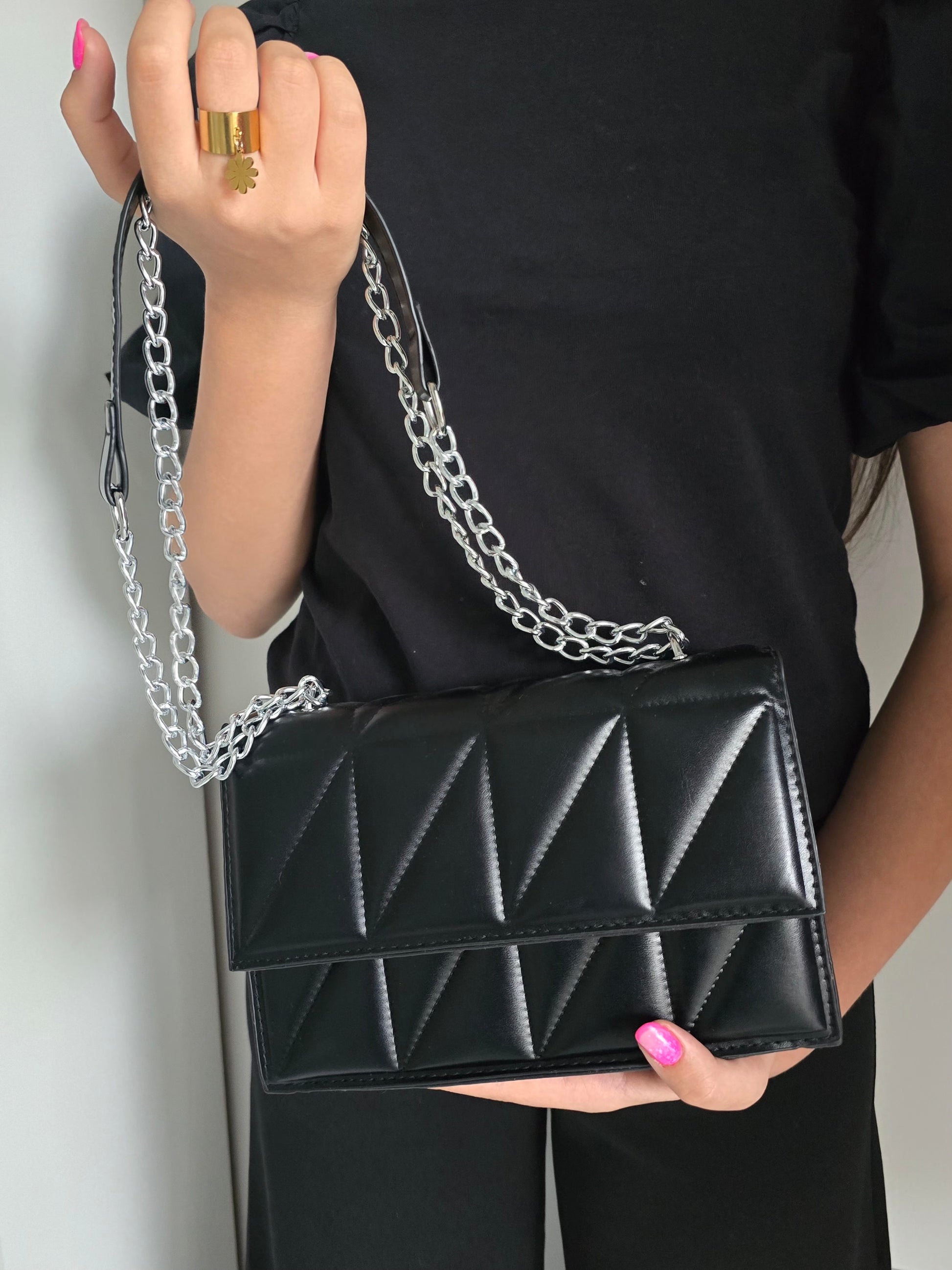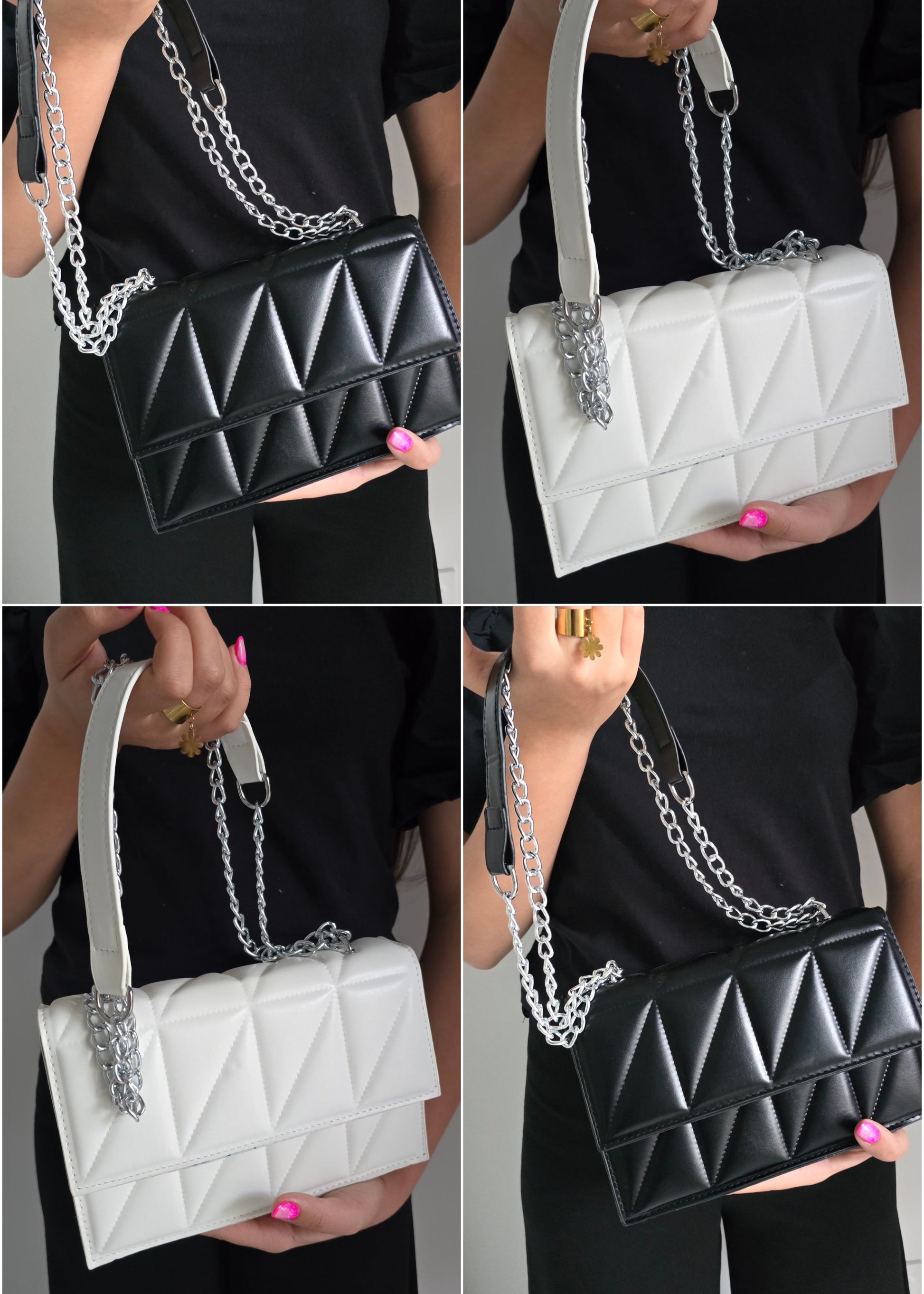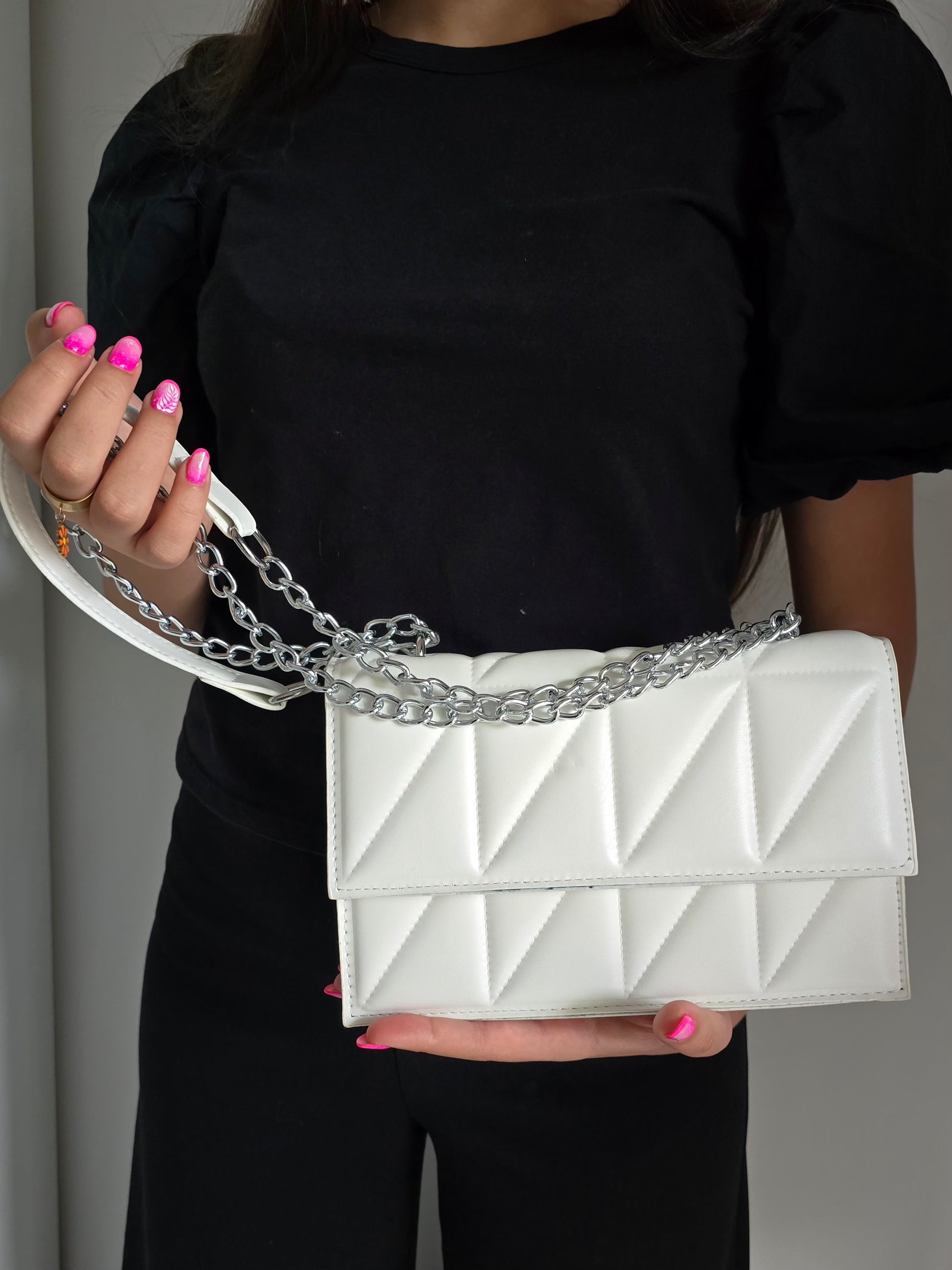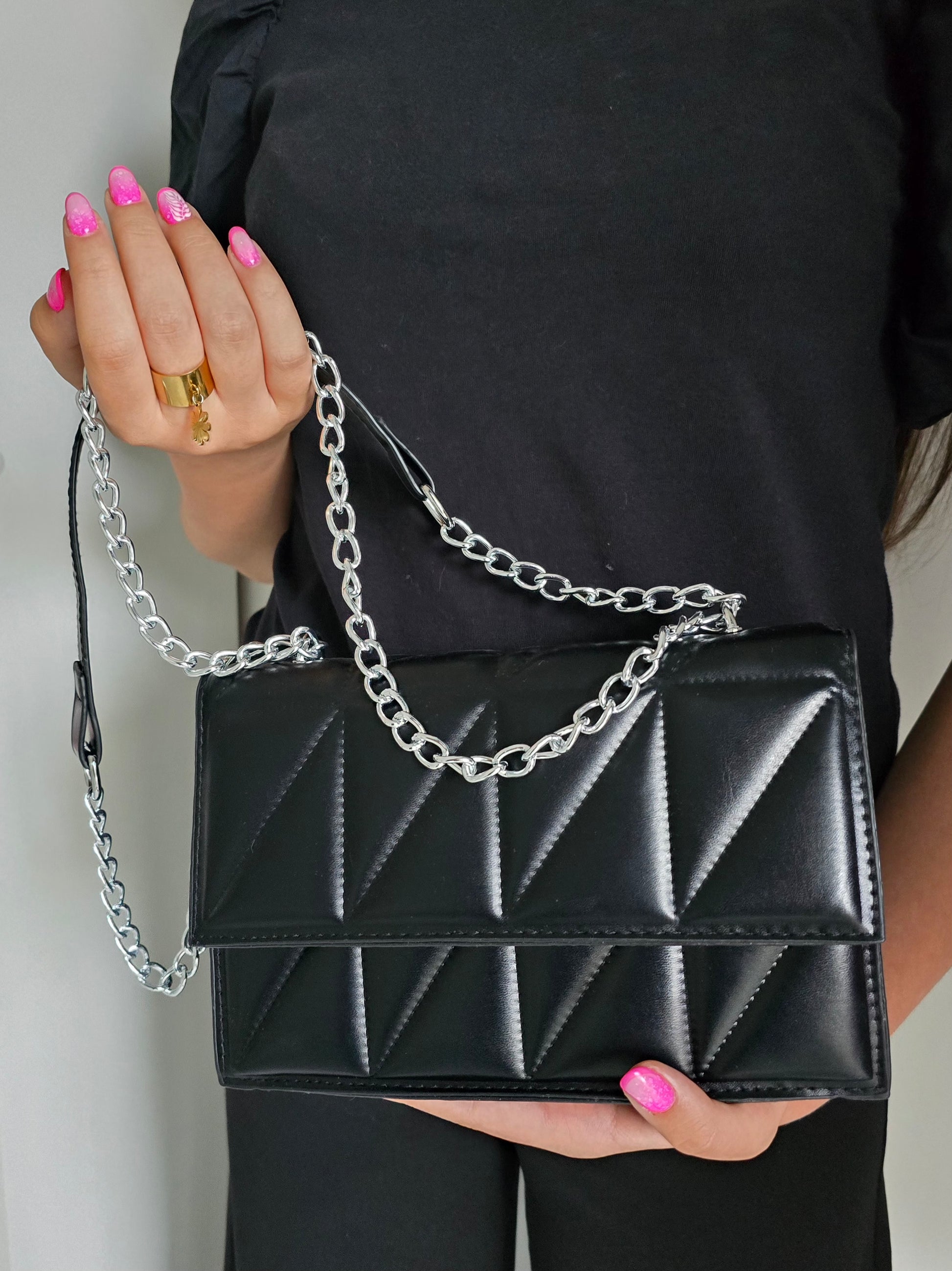 Chaîne argentée : porté épaule, bandoulière ou à la main selon vos envies.